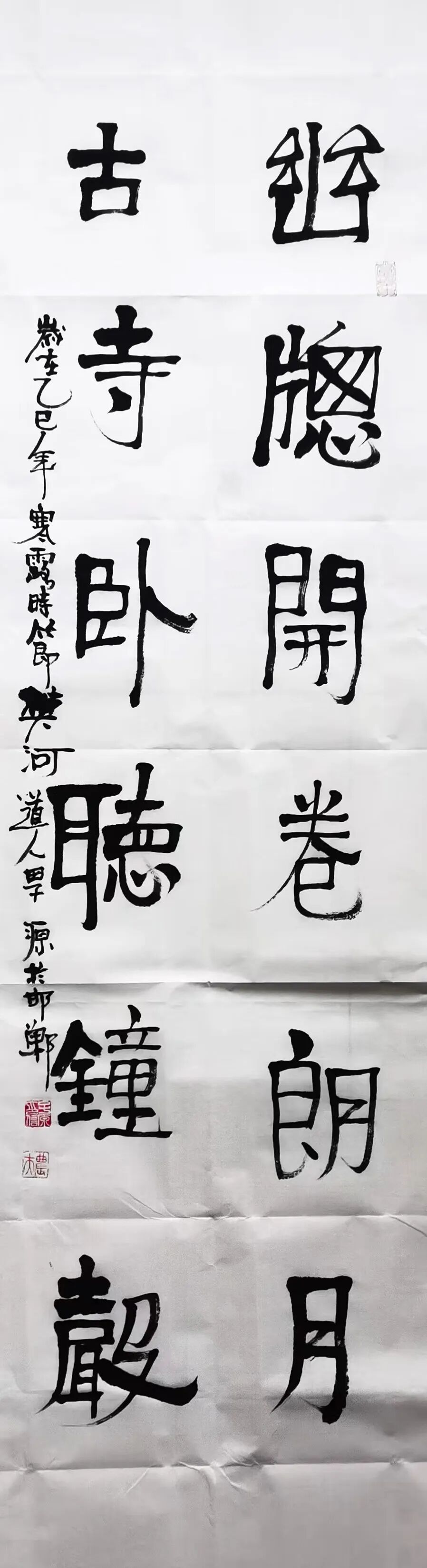 田子源书法:幽窗开卷朗月 古寺卧听钟声
