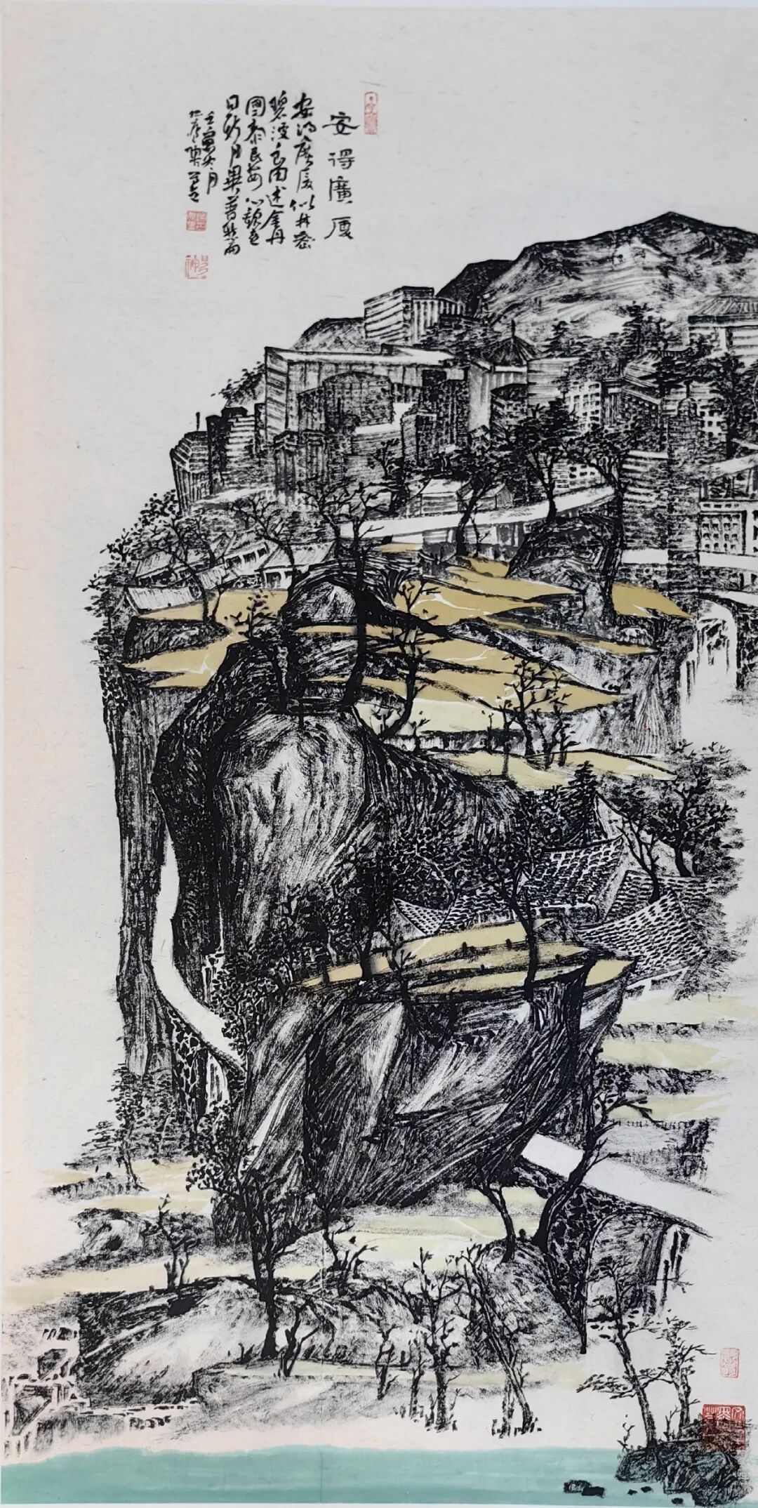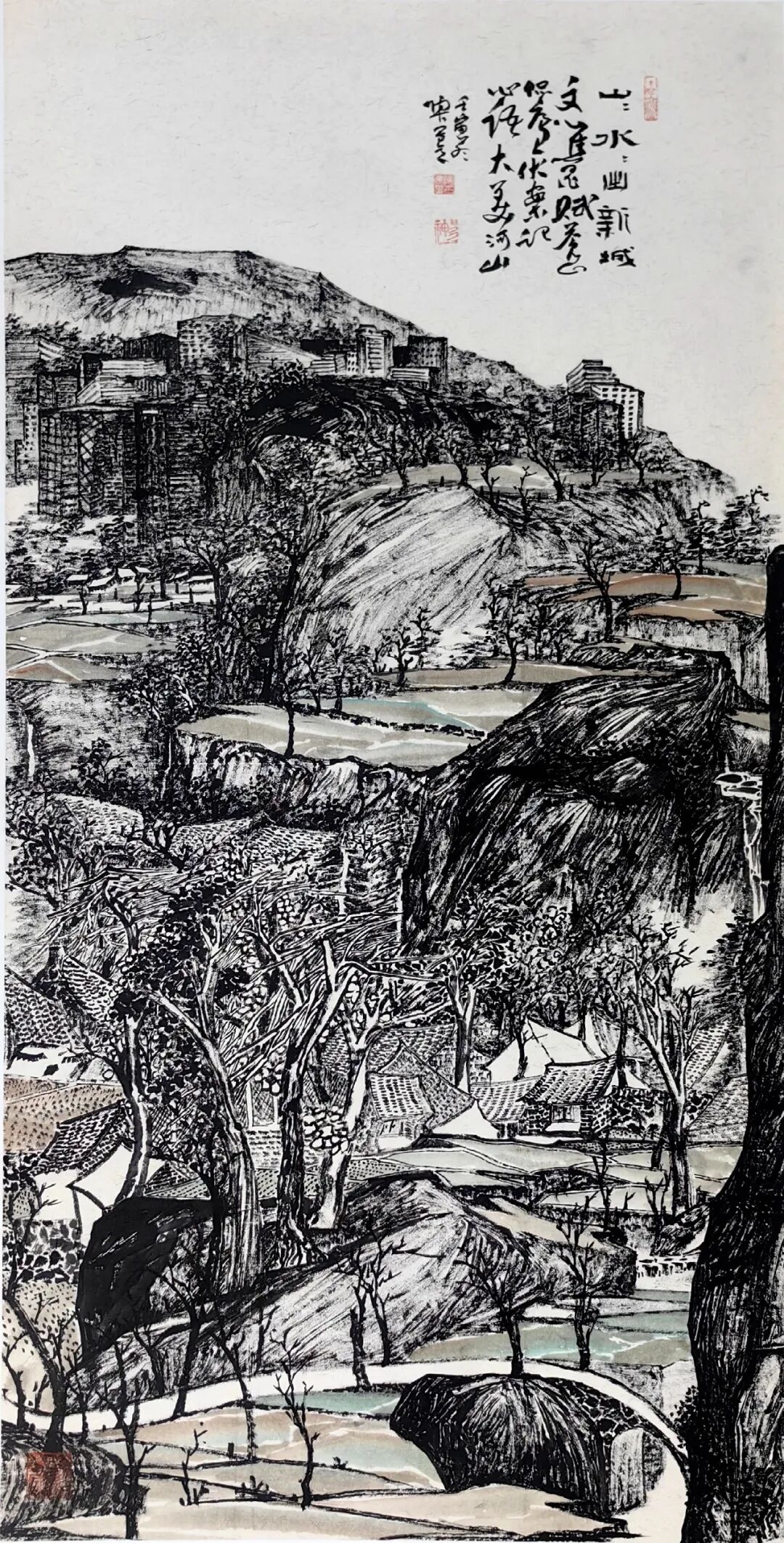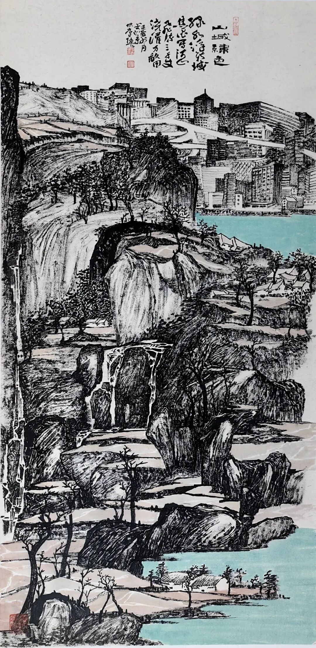 陶古的山水比较世俗,有人烟的,有村落的,从村落过渡到城镇,从城镇到城市,就到了钱学森提的“山水城市”这个概念,所以陶古在题材上填补了一般山水画家不敢碰的城镇与城市。1992年8月14日,大科学家钱学森非常关注咱们的山水画,他给我写信说,笔墨当随时代,城市都那么热闹了,笔墨能不能画城市?三十年来很多画家都在画城市,深圳有一个,东北也有一个,还有香港的一批画家。陶古画城市,从三十年历程来说,他偏后,但是,他进来以后,很执着地就画这个,我觉得很不简单,城市很难画,非常难,你要思考中国画的魅力怎么体现。