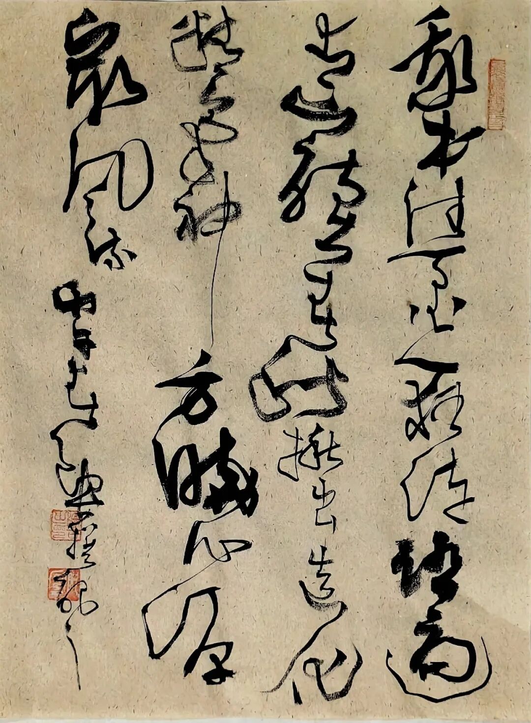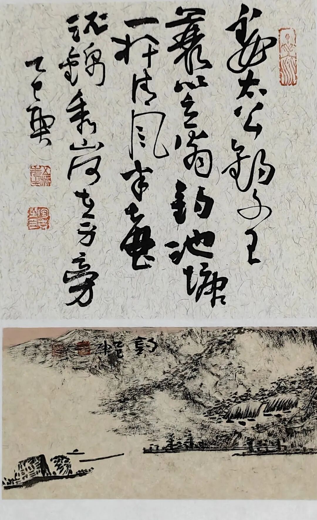 北宋时期,很多画家都用焦墨,后来逐渐逐渐被文人画给侵蚀,水进来了,焦墨就成为其中的一个骨架,到元就合理了,真的形成焦墨画,还要到明末清初,到程遂形成焦墨画,近代的张仃坚持画焦墨,张仃有那股劲儿,现代画焦墨的也还有一些,像现在这两位,包括花鸟的,山水的,花鸟我就觉得挺难的,南方的谢天赐就是焦墨,但是他还有颜色,湖南的毕福继也是大写意的焦墨,但他也上了些颜色,焦墨配重彩,陶古焦墨偶尔也有点颜色,有时侯一片颜色,我看也不一定非要实,死把这个,我觉得有时候也可以不太实,我这个观点不知道怎么样?