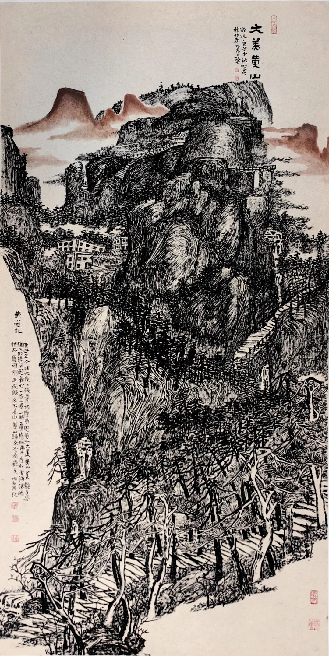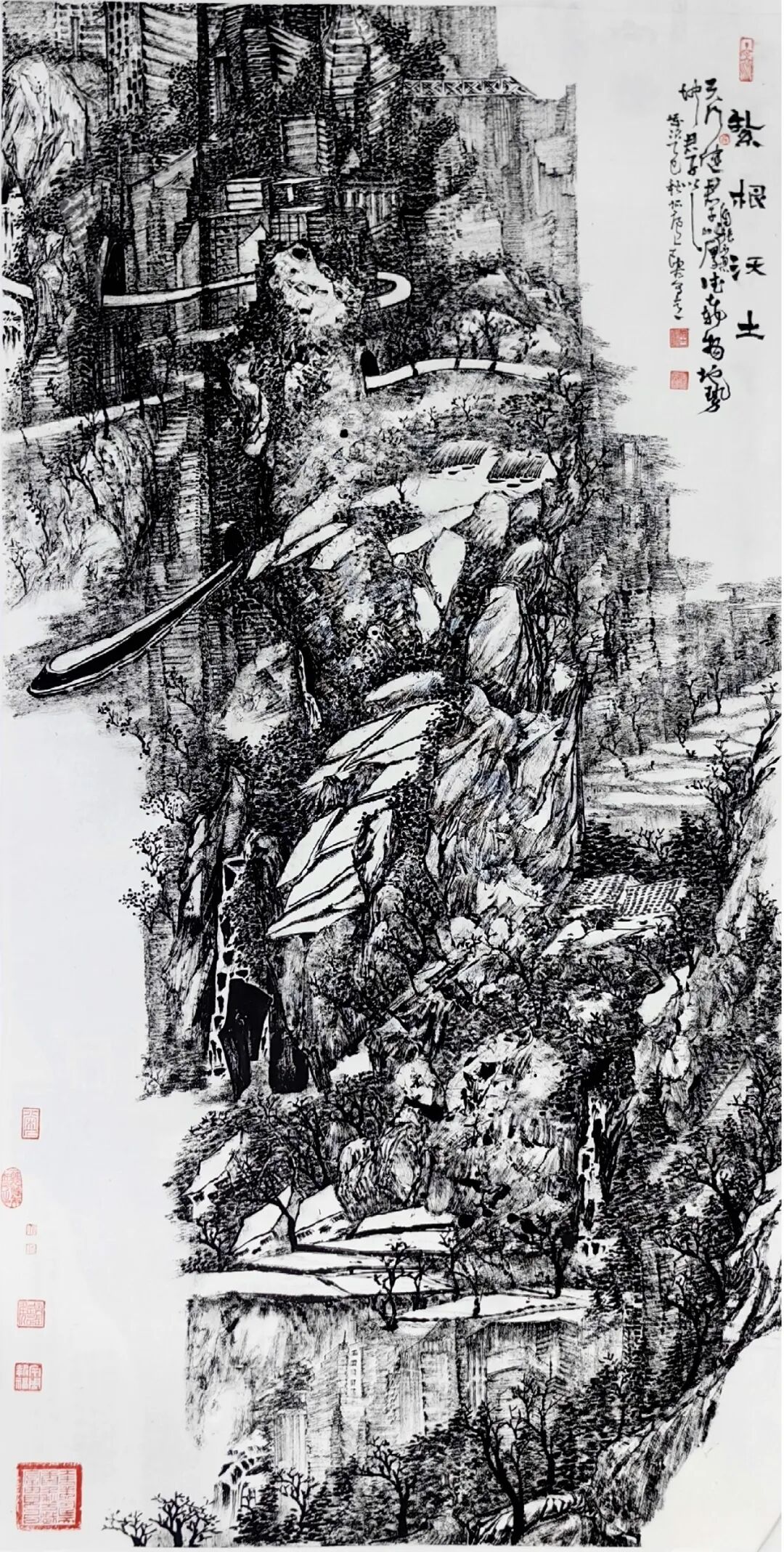 文化和旅游部最近约范迪安画通州,并且要搞一个跨国的展览,今天我看到陶古画通州,这张作品是非常非常精彩的,作品画的很成功,将北京典型的标志性建筑放在一块儿,所以,我今天才意识到,陶古的山水不单是山水,而且融入城市元素,钱学森要是在的话,一定会关注,城市山水已从焦墨的角度去创新,这个非常好,非常有意思。