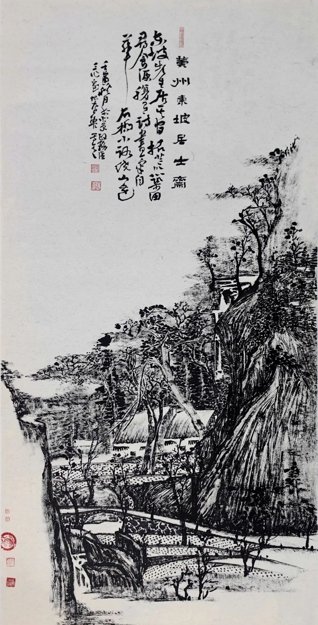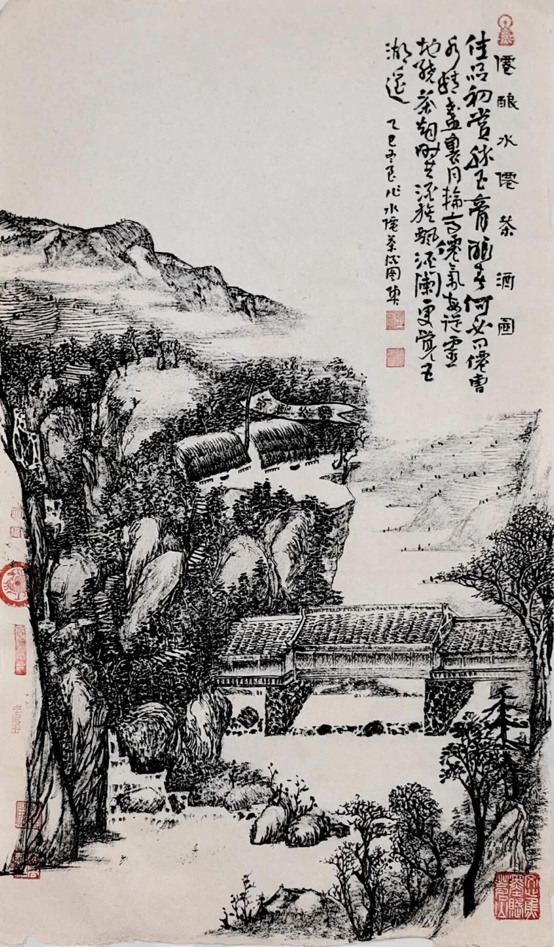 诗书画印是中国传统书画四大法宝,衡量一个书画家的艺术内核的高低离不开这四个元素,无论技法,画理,美学等方面,陶古先生都是有高度的,在他的焦墨山水作品里,你还能品味到文学性,诗性,陶古先生的诗词都是自己创作的古体诗,这个不得了,很多诗句耐人寻味,既有打油诗的生活气,又有高拔洒脱的文人气,诗有诗眼,画有画眼,题画诗不仅诠释了绘画的内涵,它也起到画龙点睛的作用,能让一副作品顿时生龙火虎起来,不得不说,陶古是一个素养比较全面,有一颗文心的艺术家。