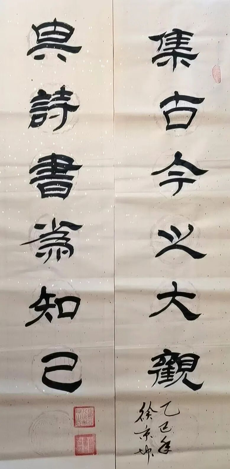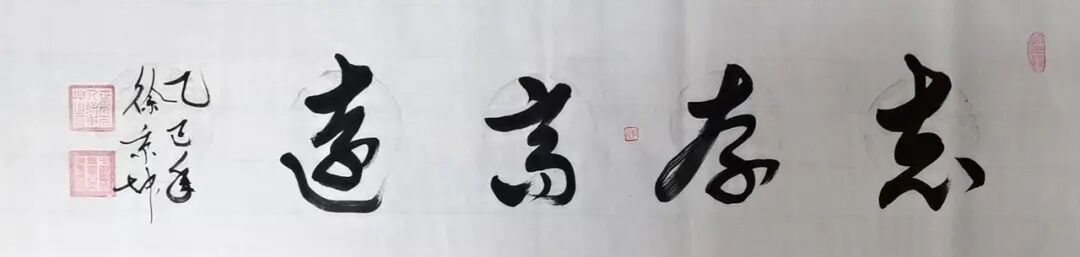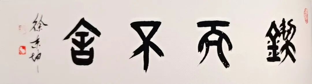 细品徐秉坤先生书法的精神,可用“正、大、浑、朴”四字概括。正者,取法、用笔、气格皆正,无一丝媚态浮滑,满纸浩然正气;大者,气象、格局、胸襟博大,不囿于点画雕琢,重在整体气韵;浑者,笔墨浑厚、意蕴浑成,线条如铸铁,墨色似古铜,尽显历史厚重;朴者,返璞归真、大巧若拙,晚年笔墨褪尽火气,雄强中见天真从容。他深谙“书者,散也”的古训,始终将书法视为精神修行,在笔墨中涵养正气,在书写中参悟大道!