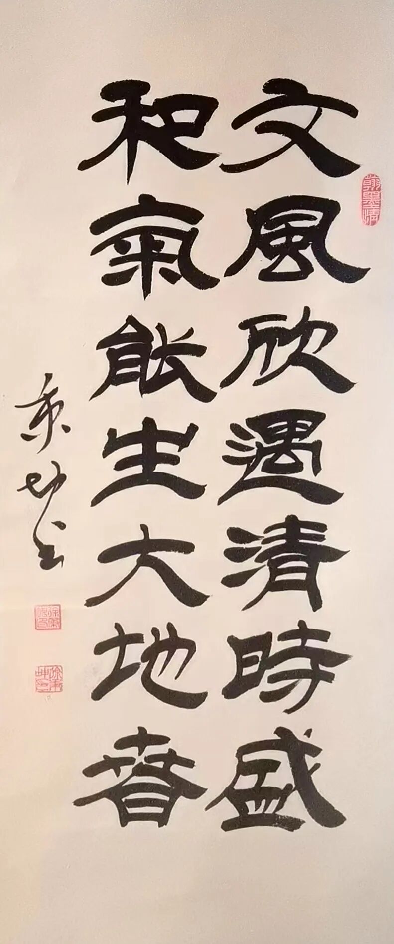 老子云:“人法地,地法天,天法道,道法自然。”书法一道,上承千年文脉,下启万代心灯,非徒笔墨游戏,实乃载道之器。徐秉坤先生,吉林长春人,年逾古稀而志在翰墨,七十余载以笔为犁、以墨为田,于宣纸之上深耕中华文明的堂堂正气,于方寸之间铺陈东方艺术的万千气象。他的书法,不惟个人性情的挥洒,更是民族精神的凝铸、时代风骨的写照。从北国春城到世界舞台,他以笔墨为桥,让五洲四海透过那铁画银钩,领略中国书法的正大、深沉与辽阔!