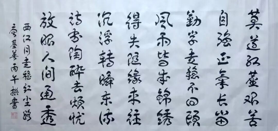 唐基善,男,汉族,1950年生,湖南省嘉禾县人。书法和诗词有高度的艺术成就,有独特的艺术风格,在国内外艺术界有良好的影响。被联合国教科文组织和中国书法家协会等200多个单位称赞为取得了卓越成就,为中国及世界文化艺术事业作出了杰出贡献的艺术家。获联合国艺术终身成就奖和非遗贡献奖及秘书长的感谢信,并授予联合国文化艺术勋章和非遗传承人荣誉勋章。获第七届中国文化艺术节最高奖·终身成就奖,亚洲书画界十大新闻人物,莫奈国际艺术奖成人组金奖。《中国文学艺术界杰出贡献艺术家》、《宗师列传》等个人资料被人物网、人民网、知乎、网易、百度、头条、华夏之声、书画网、央视网等200多家媒体专题报道。16幅书法作品彩印景德镇国礼艺术瓷。