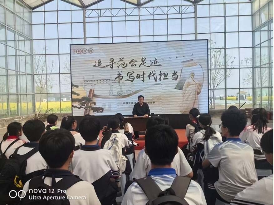 中国范仲淹研究会理事朱振波,向学生作“追寻范公足迹 书写时代担当”主题宣讲。