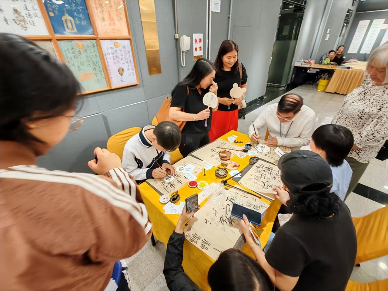 启动式及颁奖礼后,同学们热情不减,与内地同学娓娓交流,更与书法老师一起即席挥毫,切磋书艺,现场墨香四溢。