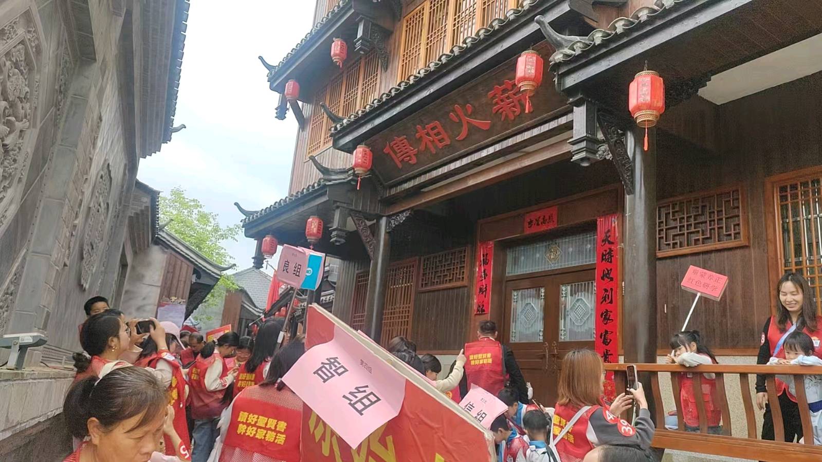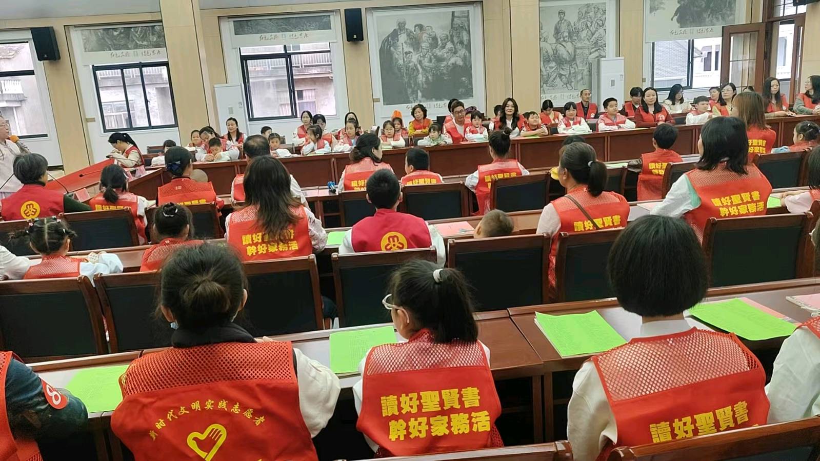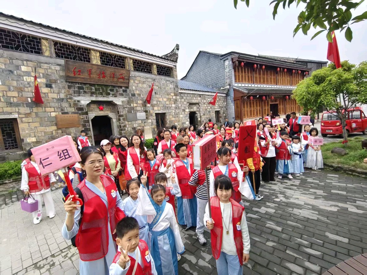 活动当日上午,基地会议室里清脆悦耳的国学童声悠然回荡。童蒙养正公益读书班的孩子们端坐整齐,专心投入时长一小时的经典朗诵与课程学习,在朗朗诵读中体悟礼仪德行,传承中华文脉。国学学习结束后,师生及随行家长一同前往蓝杰红军街实地参观研学,漫步红色街巷间沉浸式感受当年红军的生活风貌与奋斗岁月,真切追忆革命峥嵘往事。