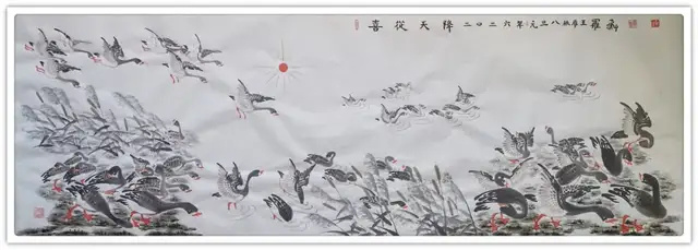 作品多次被邀请赴美国、巴西、俄罗斯、新加坡、韩国、日本和港台地区画展,获“世界美术大奖勋章”及“二十世纪中日书画名匠勋章”。2008鸿雁作品五十米长卷入选国宝档案存档。