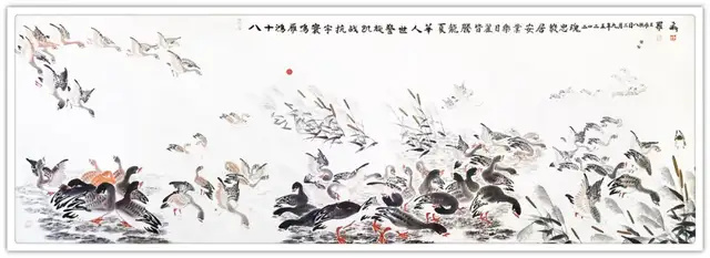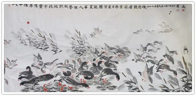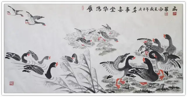 罗维存先生绘丹至今,其画作于单纯中显繁境,笔精而墨妙,神清而气爽,两者相互生发,蒙养以生长,神韵冲和,造诣非凡。鸿雁于千里,展翅高飞,肃肃其羽。先生乞灵感于自然,求法度于非法,是今日之画家多不能至也,气愈大而魄愈雄,格愈高而质愈贵,一纸笔墨,尽归罗维存先生魂梦之间,笔墨之下也!其以鸿鹄之志之深心,超然出尘之怀抱,必能创造自我之艺术新境界,绘雁之路如鸿雁腾飞、扬名寰宇!