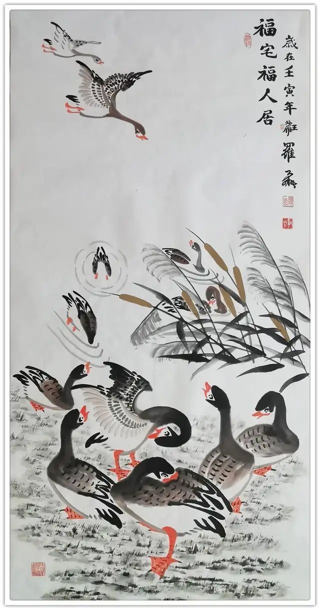 其作品经徐邦达、启功、沈鹏和靳尚谊等多位专家鉴定评估准予在中国艺术品投资交易市场展示交易。鸿雁作品被国际书画巨匠范曾导师和世界书画艺术巨匠陈其旋导师的好评。著名书画评论家,史峰教授赞誉为罗先生的鸿雁丹青,展现了大画家的技法和功力,艺韵气魄,令人畅怀。必将在未来画坛继续散发艺术的光辉。先生笔下的鸿雁极为传神,有着食宿飞鸣之态,文轩儒雅之韵扑面而来。墨香挥高意,高翔鸿鸽志。先生将自己的秉性和气质融入到自己的作品中去,用素纸墨香绘就鸿雁长飞铺就先生的文思言语。