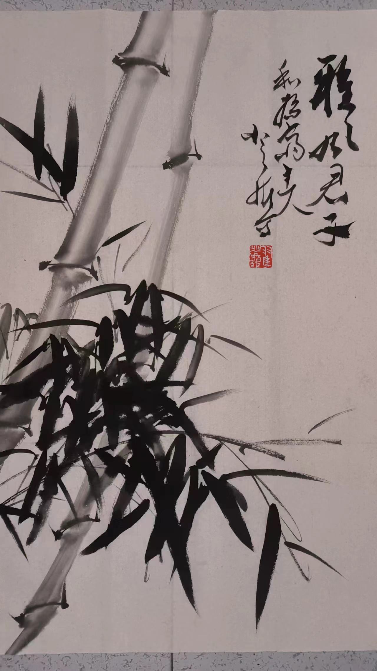 竹题材也是翟登绪擅长的领域,他以竹喻君子,将自身的品格与追求融入竹的创作之中。他笔下的竹,或挺拔苍劲、或潇洒飘逸,以篆籀笔法写竹干,行草笔法画竹叶,墨色干湿浓淡变化丰富,线条苍劲有力,充分展现了“未出土时先有节,及凌云处尚虚心”的君子品格。其作品《风竹》《墨竹图》等,多次在全国大展中获金奖,画面中,竹叶随风摇曳,竹干挺拔向上,既有自然的灵动之美,又有文人的风骨之气,传递出积极向上、坚韧不拔的精神力量,成为众多藏家争相收藏的珍品。
