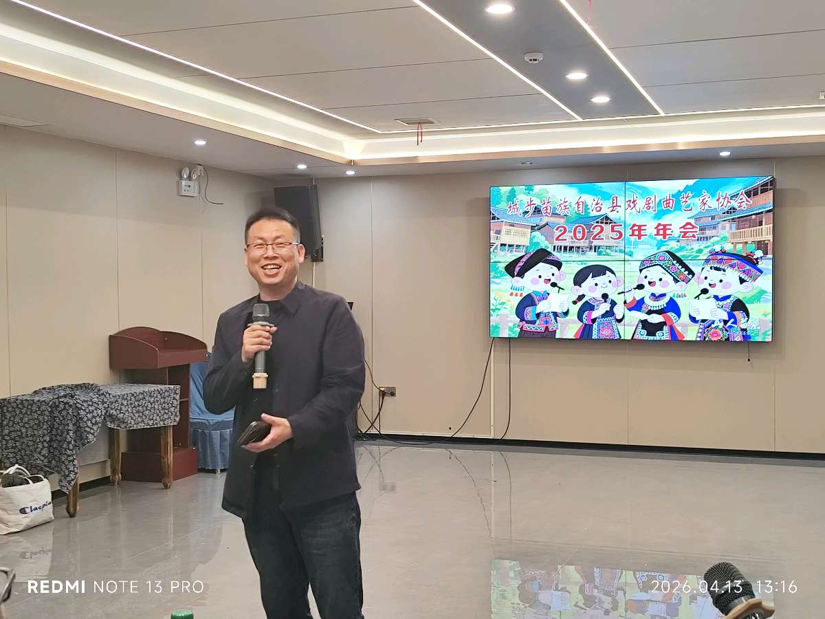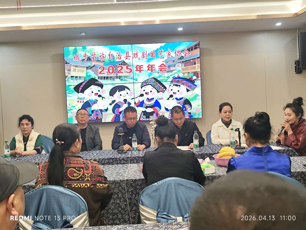 为弘扬传统戏剧曲艺,扎根基层、服务群众文化生活,2026年4月13日,城步苗族自治县戏剧曲艺家协会2025年年会在县城山人苗寨举行。来自相关单位的代表、协会会员及戏剧曲艺文艺工作者等百余人参会。