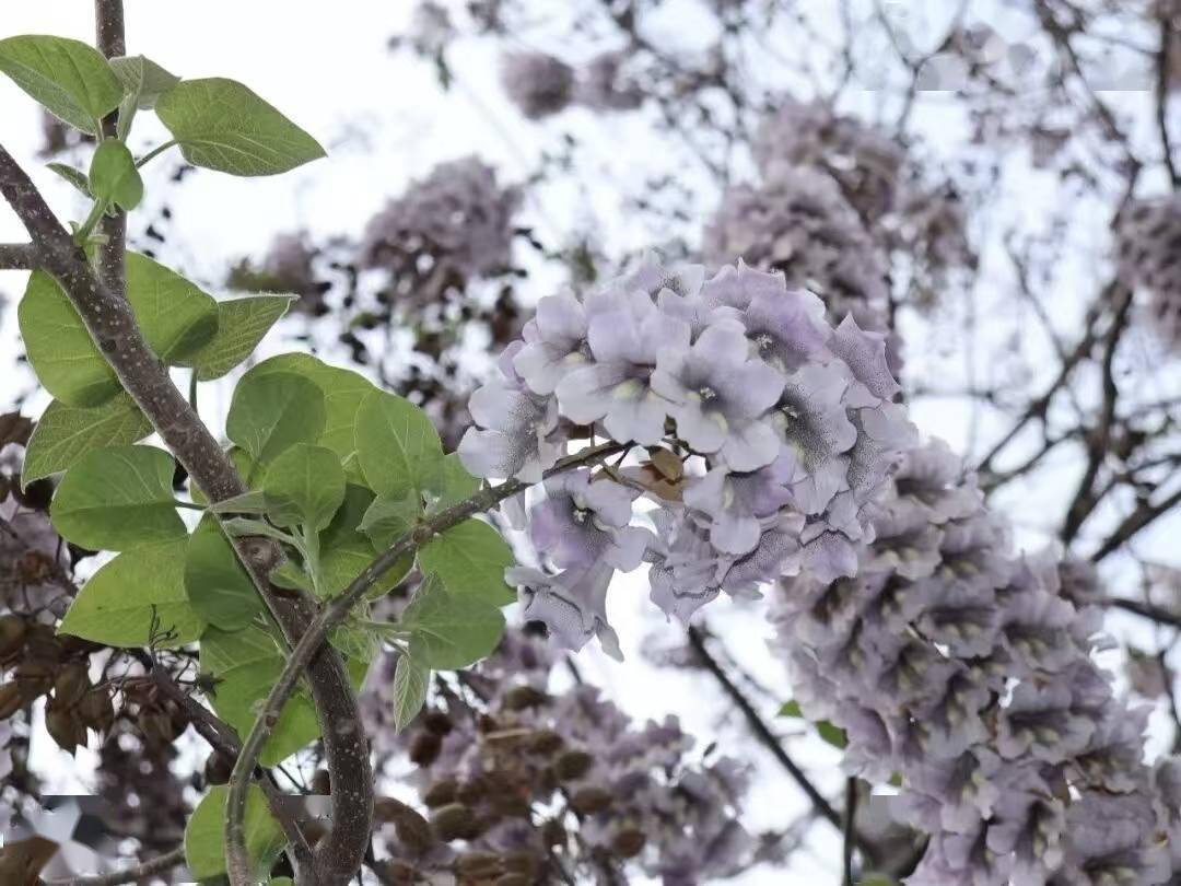走近桐树林,方能细品桐花的灵秀之美。高大的桐树枝干疏朗,新叶尚未完全舒展,更衬得满树繁花恣意张扬 。