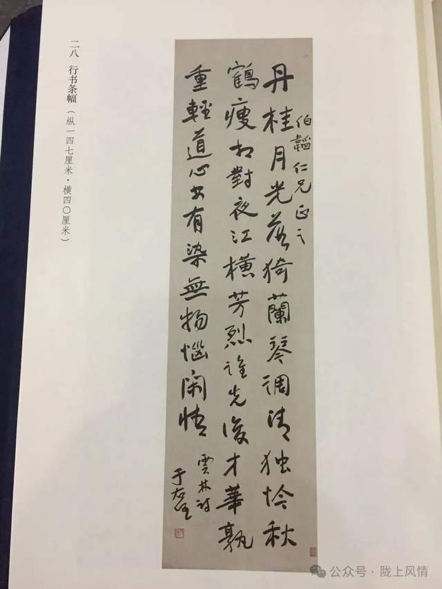 二〇一五年,在西安偶遇于右任先生行草中堂。此作原为北京大拍拍品,已为陕西于公德藏,装池精良,悬于美术馆中。先生书法笔力苍劲,气度开张,实为难得珍品。于公爱之甚笃,初不肯让,我以诚相邀,把酒倾心,终得割爱相授。随即托友人驱车护送回兰,宝之如璧,朝夕品习。半生收藏,此类以心换画、因爱结缘之事,不可胜数,每一段皆藏深情,每一幅皆载温厚。