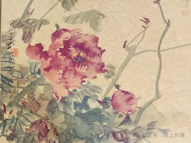 又有幸得陈玉圃先生工笔兼写意牡丹一帧,绘于板上,小品见大境,实为神品难得。古往今来,画牡丹者不可胜数,然多流于浓艳富贵,易入俗套,能画至陈玉圃先生这般境界与水平者,实属罕见。此作兼工带写,工处细腻精微、神韵毕现,写处洒脱灵动、意趣盎然。先生以清雅淡逸之笔,洗尽牡丹惯有的富贵脂粉气,独存文人格调与高洁风神,艳而不俗,雍容而有清气,真正做到形神兼备、笔简意远、小中见大。画作到手时已近装裱店下班,我仍驱车急往,恳请小黄老师连夜装框,只为尽早悬于案侧,日夜赏玩。欣喜之际,题记数语,配图发与亲友同赏,独乐不如众乐,雅趣愈浓。