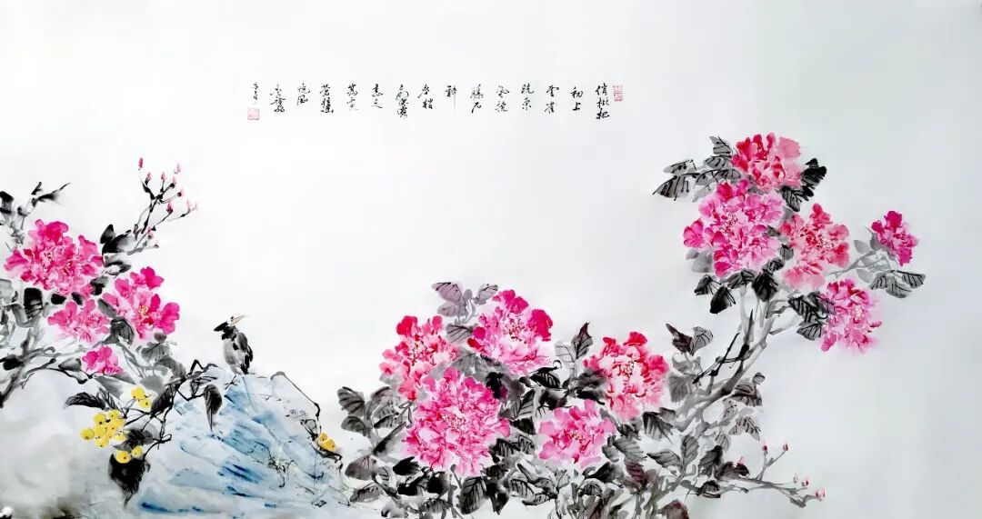 花鸟国画《忆秦娥·嬉游》(180*97cm)
