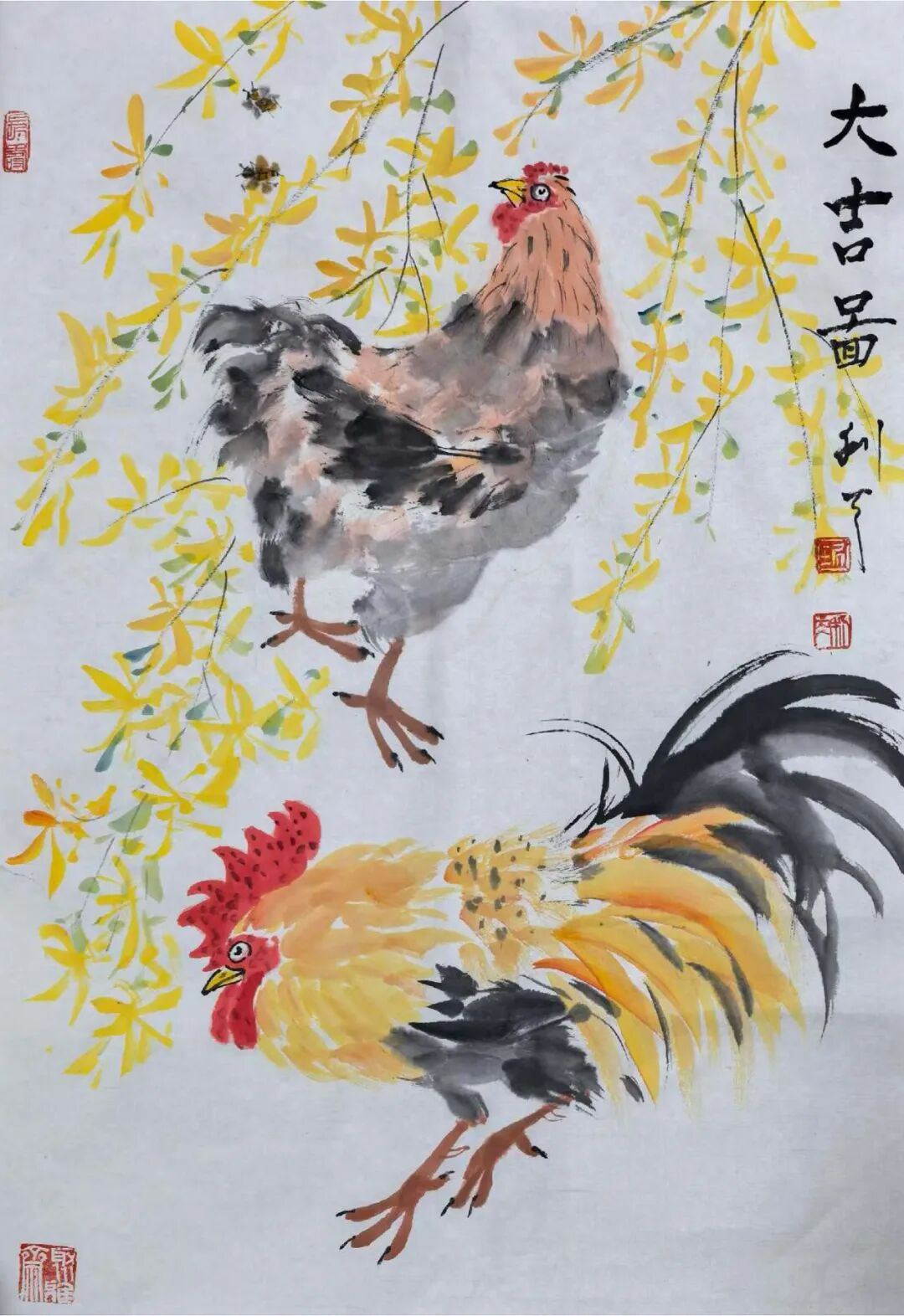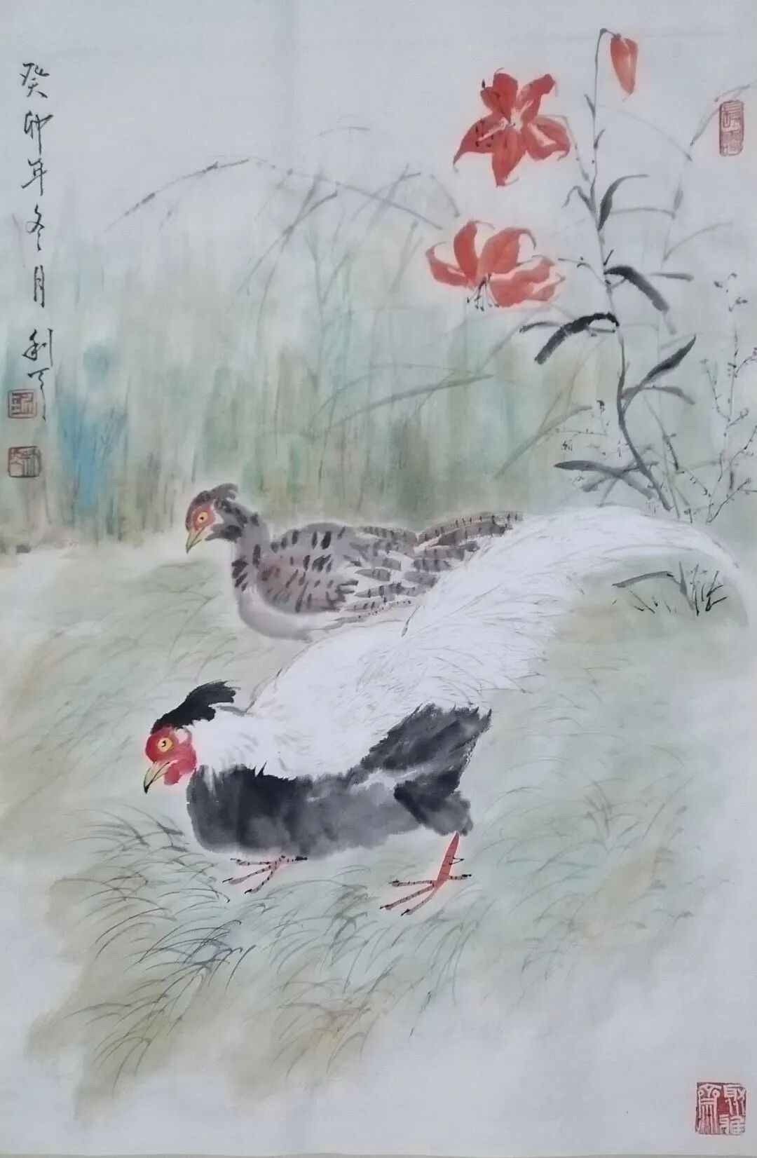 笔墨性灵画气韵,应物象形写丰神。好话来源于好的笔墨表现,来源于创作者好的文化修养和应用象形的写生积累。先生是一位非常注重文化积淀的当代文人,他用一支画笔写意花鸟的淡泊蕴藉,师造化写丰神,无论是画荷花、石榴、金鸡松鼠,还是画梅兰竹菊,都融入君子之风,雅士之度,把野旷天低树江,清月近人的情景美妙,转换成笔墨渲染的格调要妙,达到因笔养性,依墨畅志的高度,这便是丹青文化修养的大功告成!