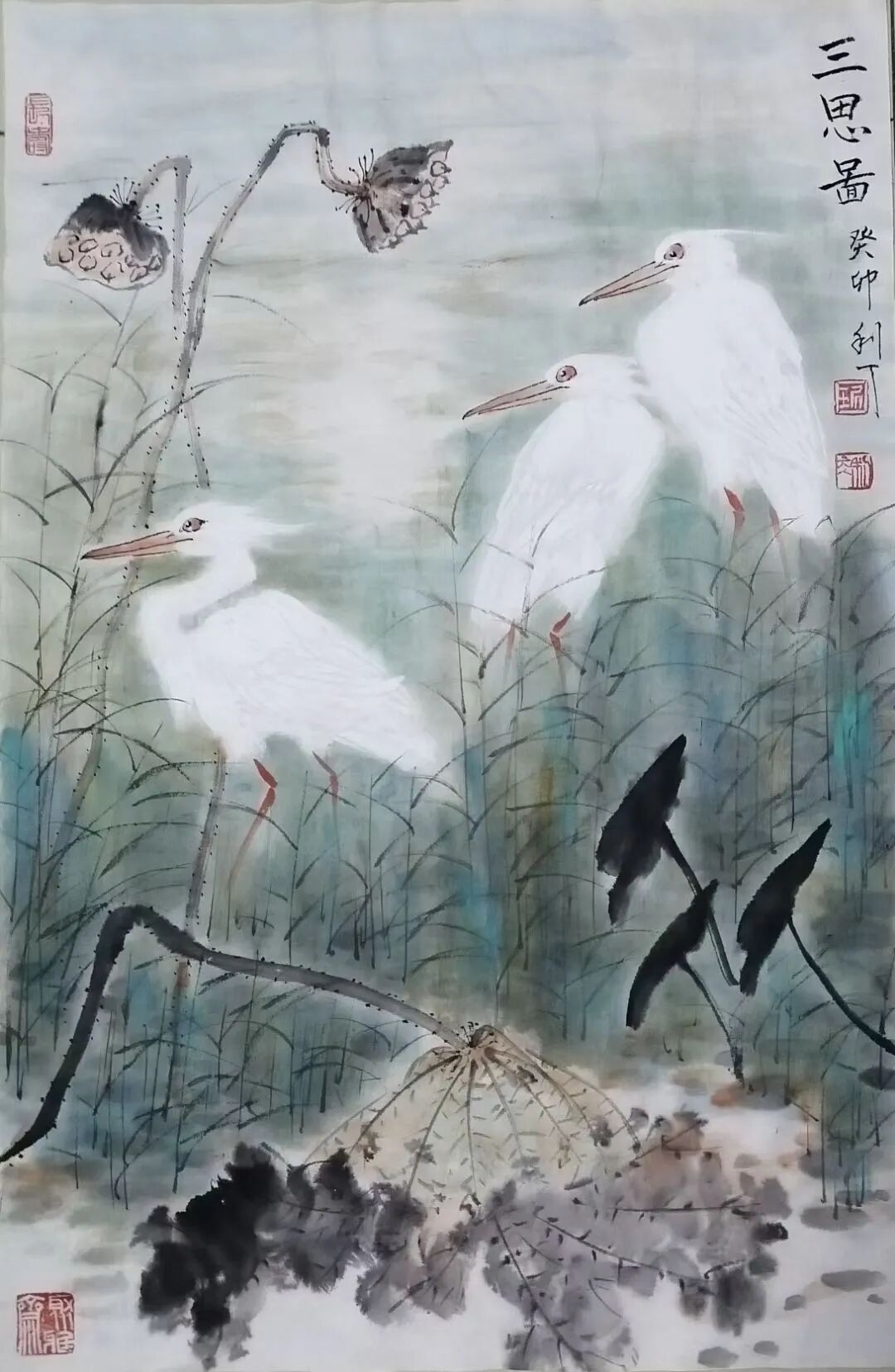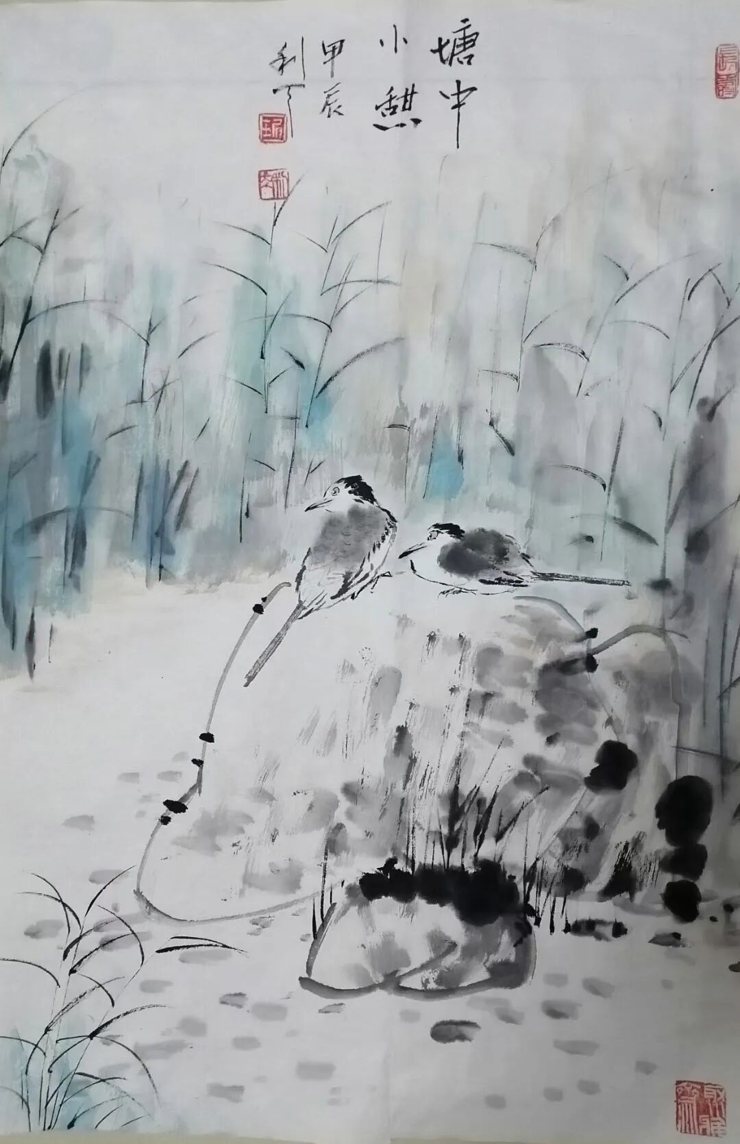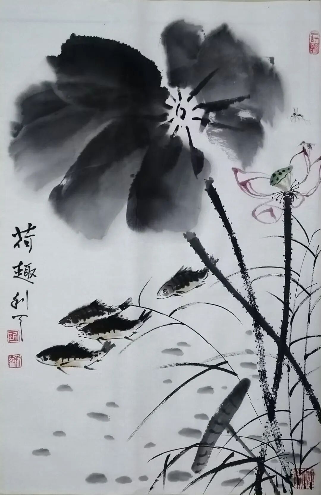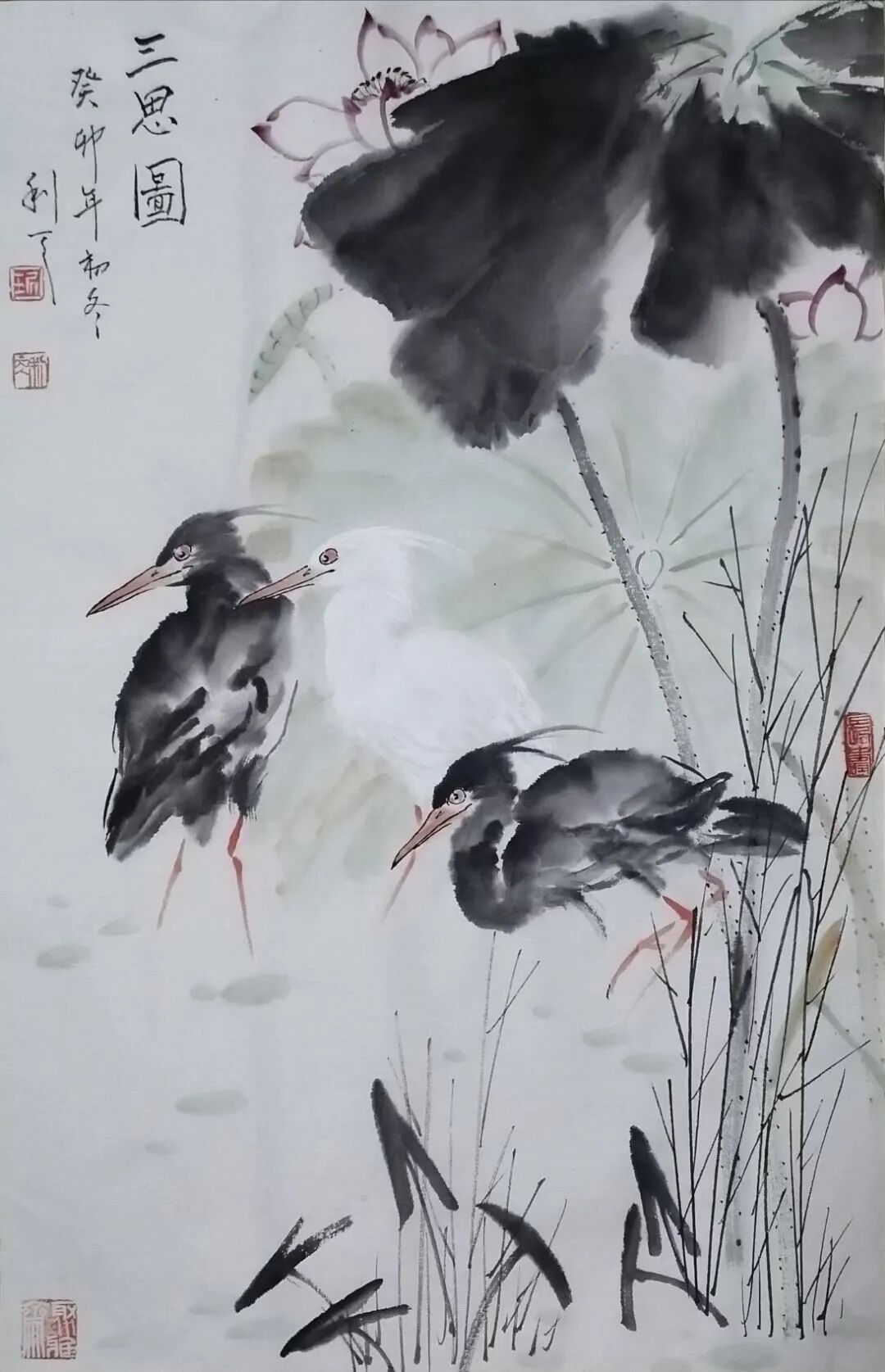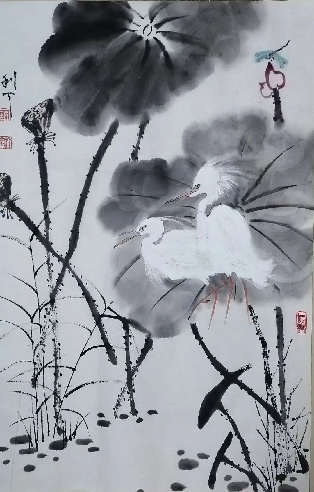 绘画题材广泛,尤喜画荷。不论是夏荷茎挺叶盛花繁,还是残荷茎枯叶残花凋,均用不同笔墨或泼洒酣畅,或揉搓干湿,使之呈现出不同笔墨韵味。再配以不同禽鸟,更生出充满生气,令人神思遐想的意境,使人得到艺术熏陶和对大自然的无限热爱。