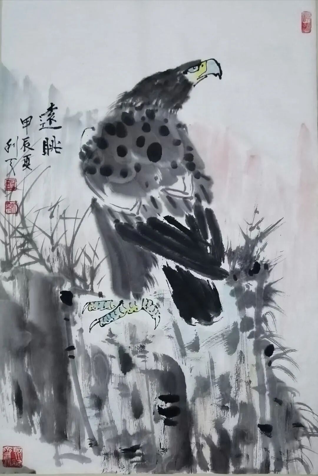 泼墨显抽象,有骨画具象,有笔有墨,干施皴,湿用染,花鸟作品的韵质显得如一天清淑气,千里碧榆风。在色不碍墨,墨不害色的巧妙照见中,把东方审美的趣味表现得淋漓尽致,观赏可悦人之目,也可动人之心。花鸟作品可陶冶情操修身养性的动能扑面而出,果然是真正的美术佳品。诸如这样的花鸟作品挂于雅室草堂,必然是蓬荜生辉,雅致纷纷。一幅画满盈书气息,带有文化品位,尽有芬芳能除秽,更因儒雅益东轩,绝然是好画!