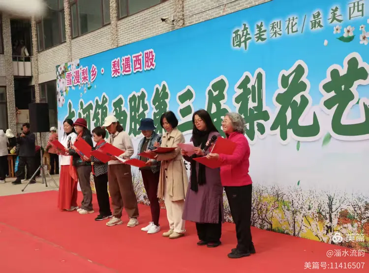 艺术节开幕式上,丝竹雅乐悠扬,古韵婉转流转。诗友高老师一曲京剧《将进酒》慷慨激昂,将千年唐诗的豪迈气魄,化作婉转铿锵的梨园唱腔;诗友“八朵金花”的古诗词吟唱清雅悠远,让千古经典的平仄韵律,融进徐徐拂面的春风里;深情款款的诗朗诵《印象西股》,更是将西股村的山川灵秀、风物人情与深厚人文底蕴娓娓道来,字字含情,句句入心。阵阵热烈掌声,是自然盛景与传统文化雅韵的深情共鸣,是诗意风骨与乡土烟火的完美相融。