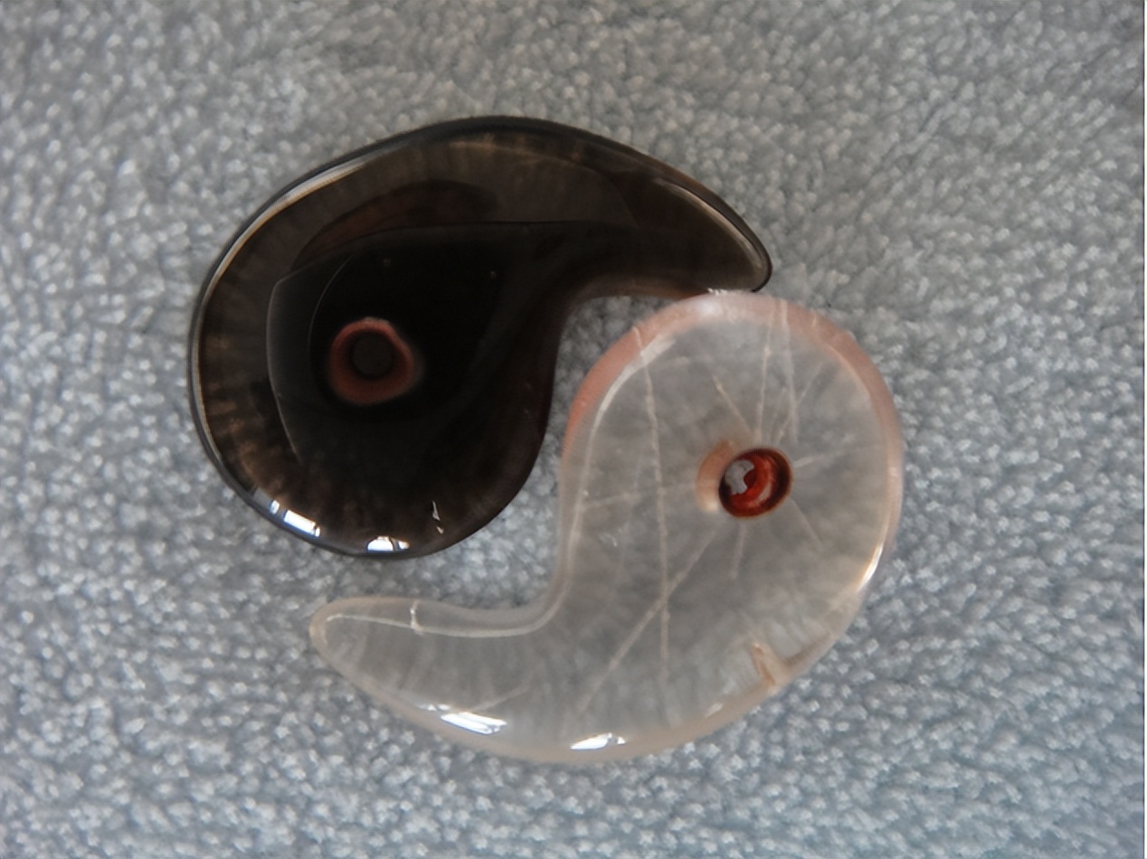尽管这些人见人爱的灵巧小器物的实际用途和使用方式尚待探索和考证,但经过特别详密观察和细致研究后,发现它的造型与中国的阴阳太极图形有关。