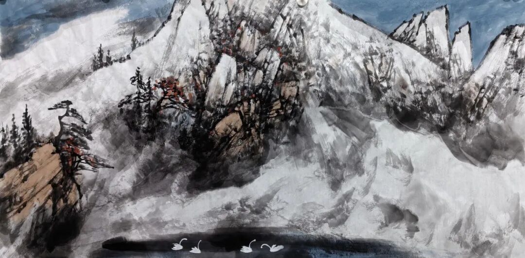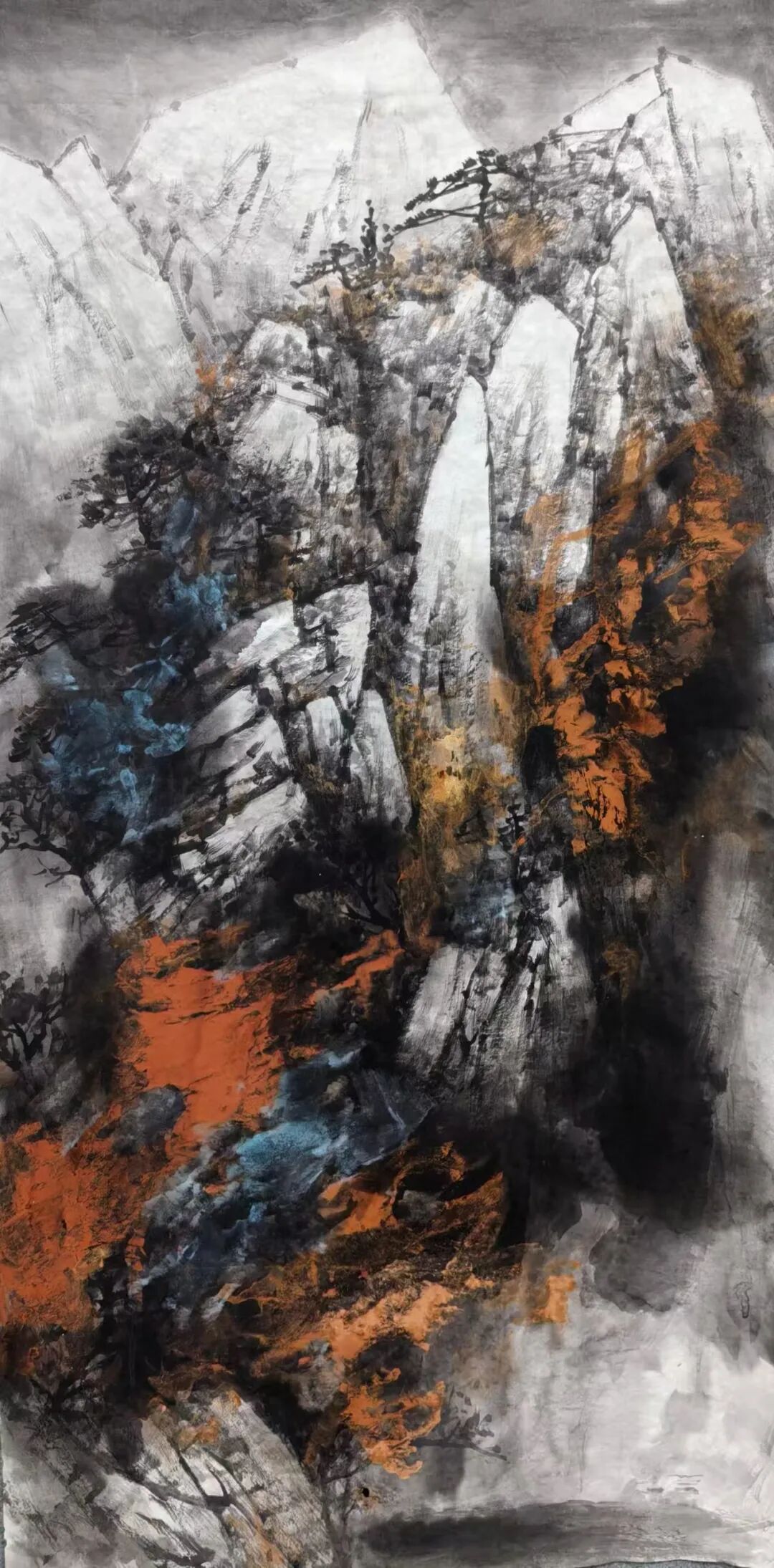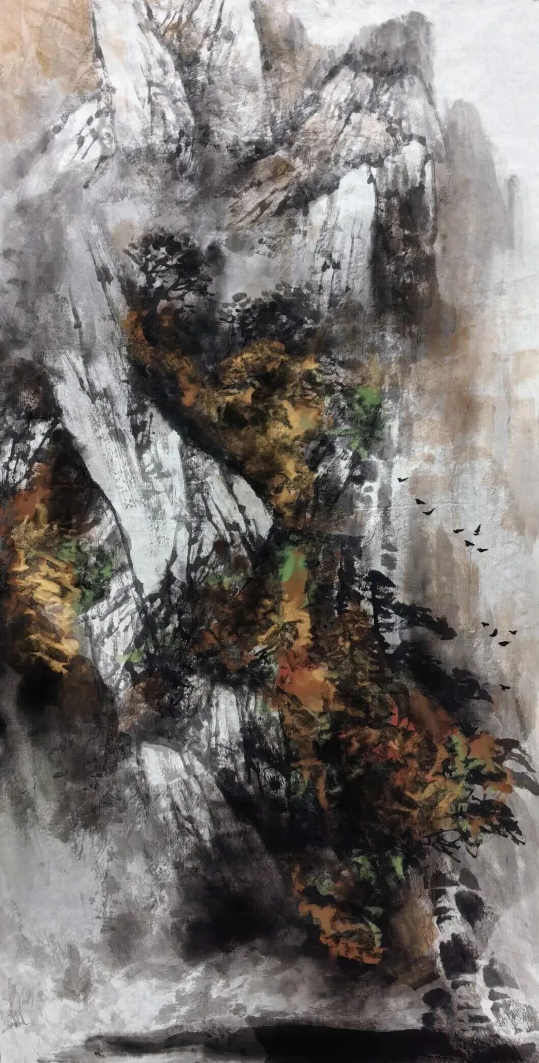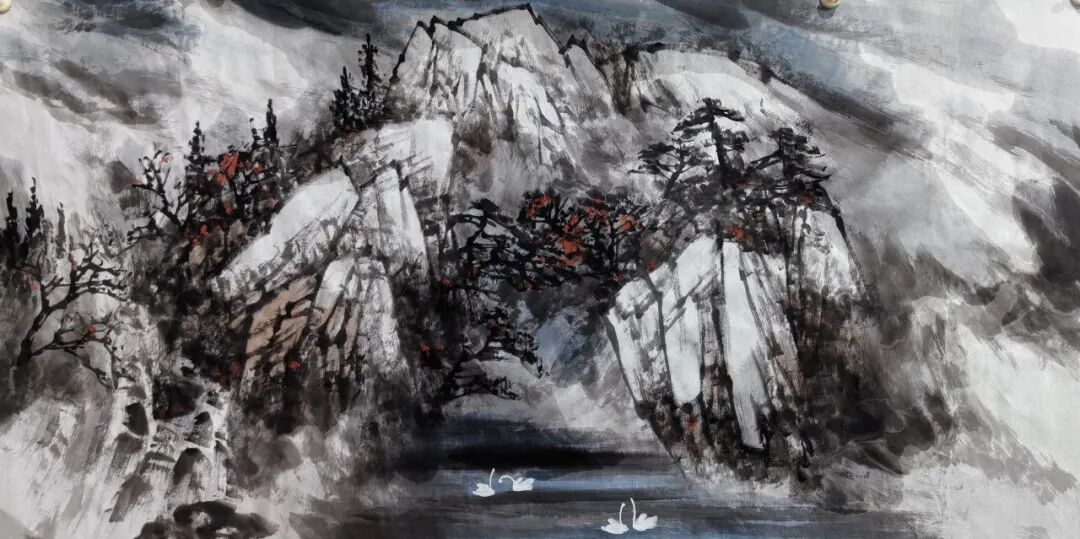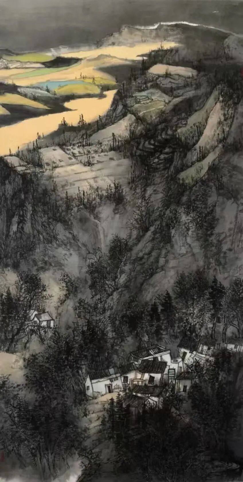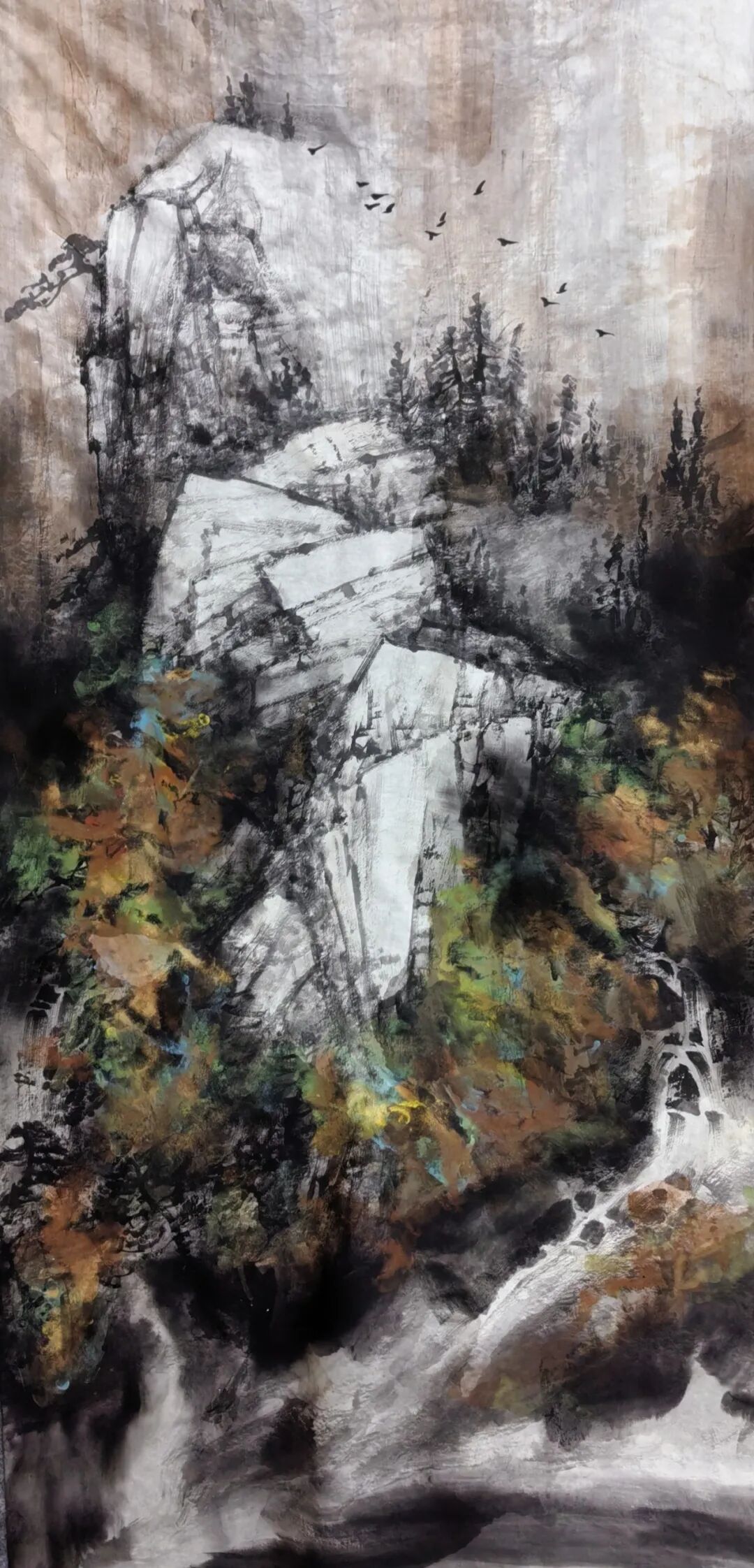 当代艺术家冯琦以写意山水取胜,她对墨色运用自如,墨汁浓淡相间,勾勒出山峦起伏、江河蜿蜒的景象,表现出山水的壮丽气势和灵动韵味。她的写意山水,有的墨意浓重,有的淡墨轻染,多以简练、概括的手法勾勒出山川的轮廓和水流的起伏,使整幅画面呈现出层次分明、起伏跌宕的景象,并在干湿浓淡之间,呈现丰富多彩的视觉效果。水是山的脉络,流转而生的是充满生命力的蓬勃生机,在冯琦的山水画中,水流贯穿其间,串联起整幅画面的气韵走势,也使静止的画面因脉脉流动的涓涓水流而形成寓静以动的效果,水吟更显山幽,从而将视觉、听觉相关联,更深刻的体验山水意境。冯琦笔下的江南景色就呈现出一派雾霭茫茫,烟雨如织的诗情画意,她将墨色揉进远山,注入山河,在疏密的皴法和润泽的技法渲染下,写出秀美的自然景色,安然的乐居景象,画面喷薄而出含蓄生动的雨润江南。淋漓墨韵的写意山水画,不仅表现出自然山水的壮美和神秘,更展现了艺术家冯琦的墨韵功力和对自然景观的深刻理解,走进冯琦的笔墨世界,感受大自然的奇妙和艺术家内心的情感表达,令人心旷神怡,留连忘返。