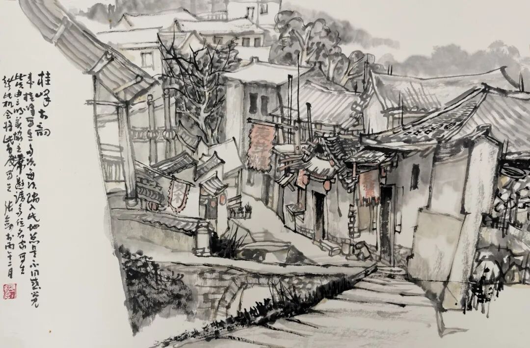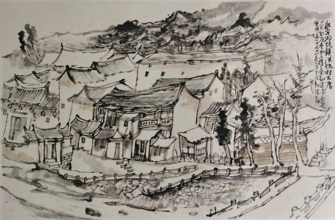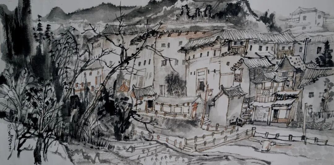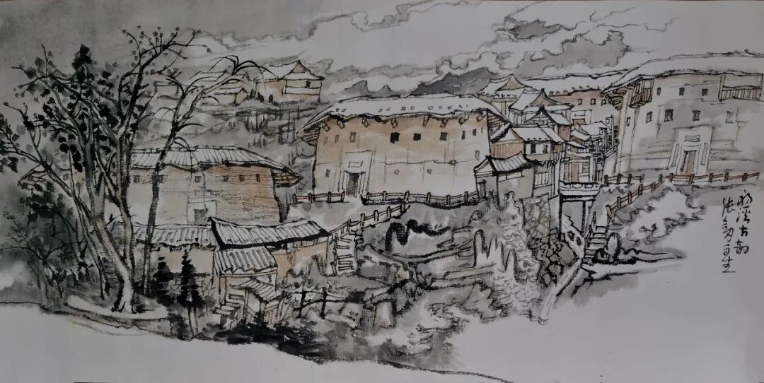 张剑《永定湖坑镇写生》56×36cm