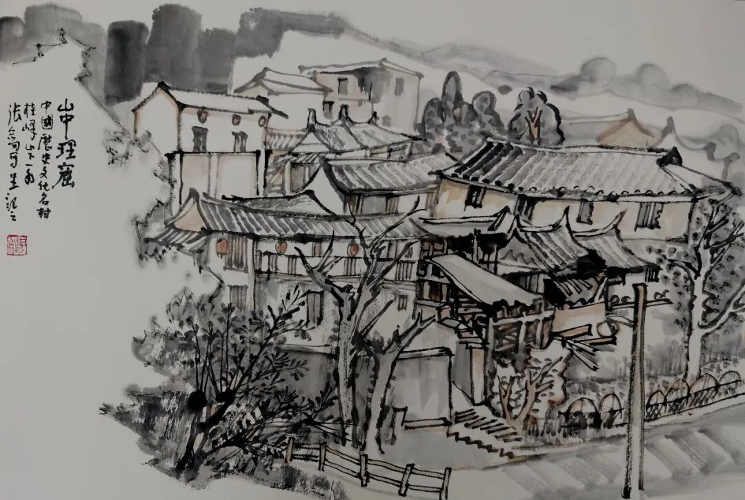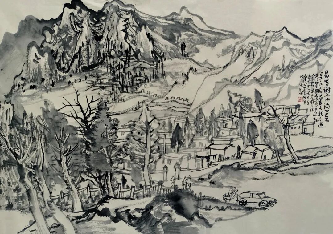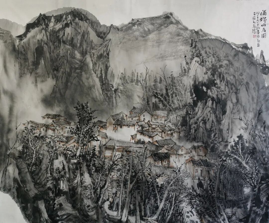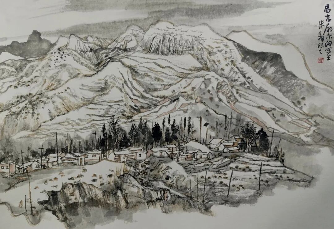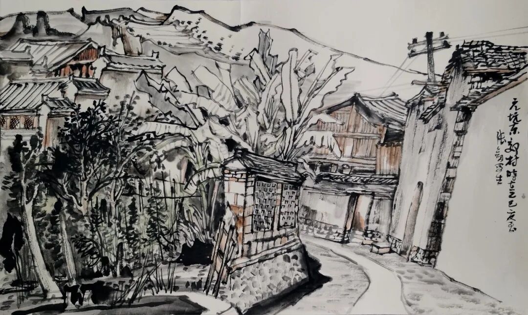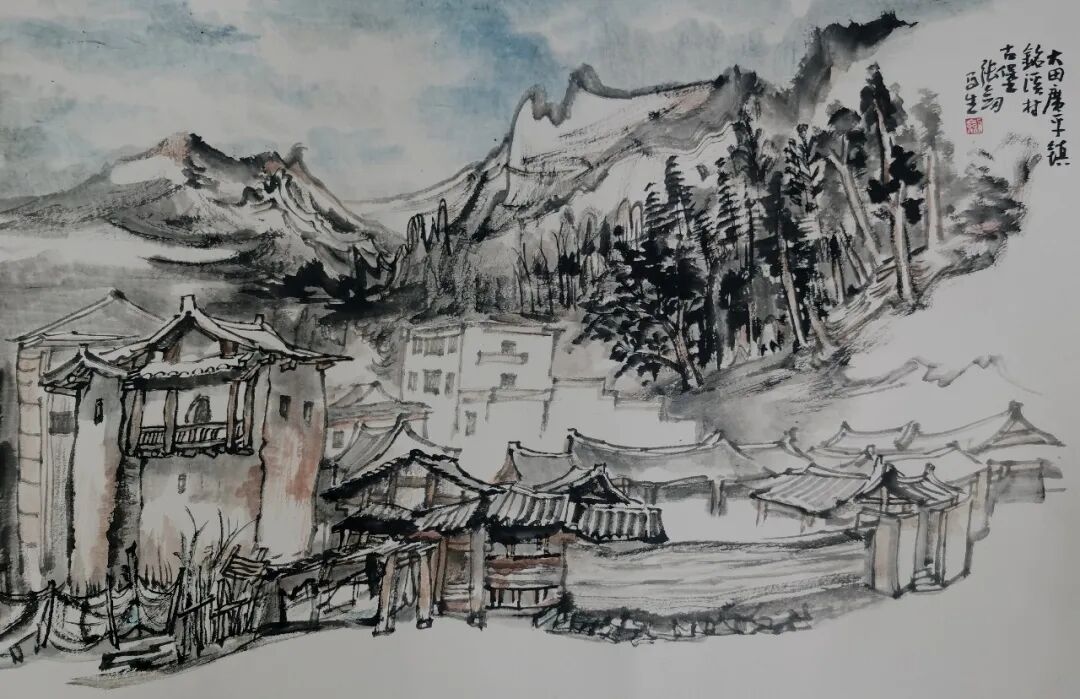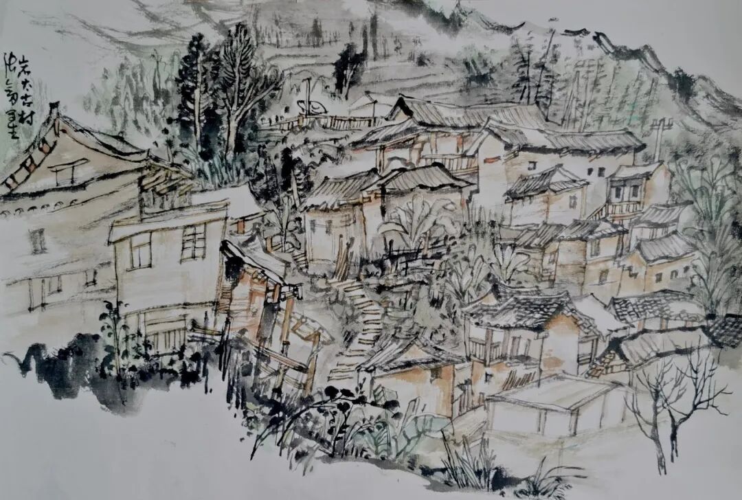 张剑《岩太古村写生》56×36cm