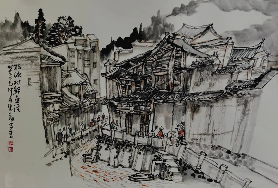 张剑《杨源村鲤鱼溪写生》56×46cm