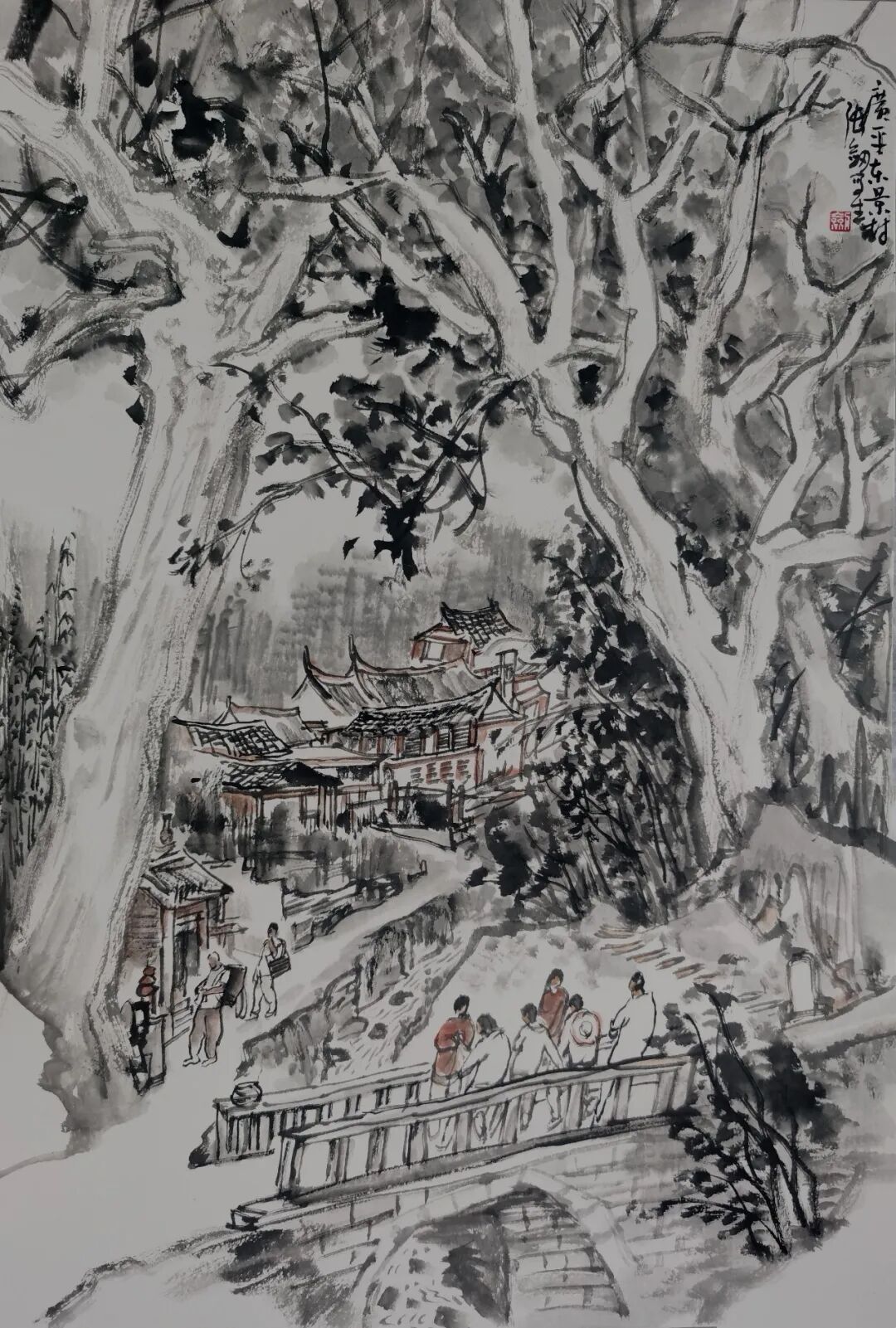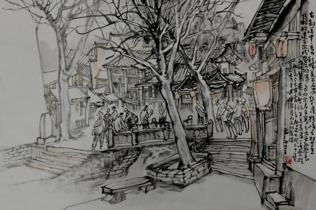 张剑《广平万宅古廊桥写生》58×36cm