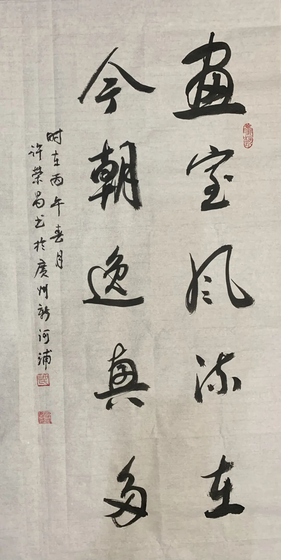 许荣昌的书法艺术,博采众长,择善而从,近十年来曾得到暨南大学谢光辉教授的指导,书法更进一步提高。2018年茂名晚报文化版以全版刊登8幅作品。随后广东信息报,广东广播电视,东方大境书画刊物等十多家媒体广泛报道。近年来,在亲人和朋友的鼓励下每一 二年出版一册《许荣昌书法作品集》,至今已出版第六册。2023年5幅书法作品入编东盟官方主编的《东方艺术大境》画集,2024年6幅书法作品入编东盟官方主编的《大美之艺》画集并由东盟官方颁发“东盟文化艺术交流大使荣誉证书。