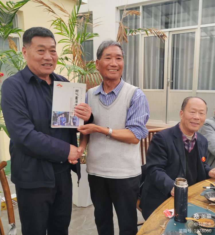 孙斯水向邹平市退休干部王洪国先生赠送由周村润心书屋读书会编写、纪念中国人民抗日战争暨世界反法西斯战争胜利80周年特刊《润心书屋文辑》第四辑。