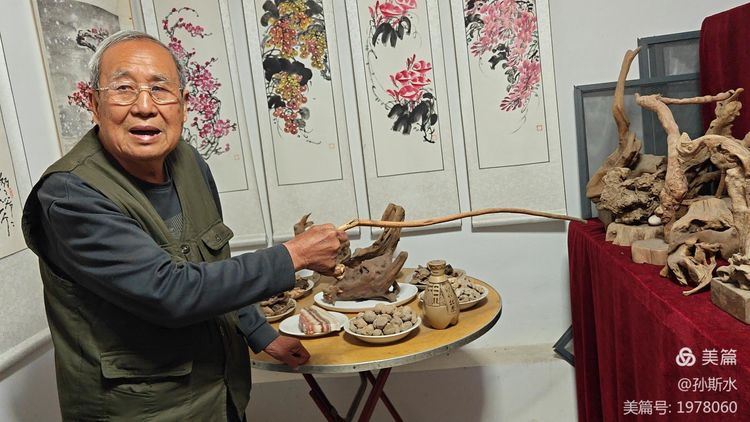 年事已高的刘昆老人,堪称“艺术多面手”,文学创作笔耕不辍,书法绘画笔墨传神,根雕篆刻巧思天成,将五大技艺融会贯通。