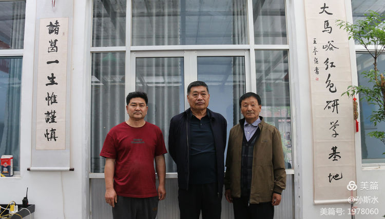 李永水老师、王洪国老师(中)与张山峰先生合影留念。