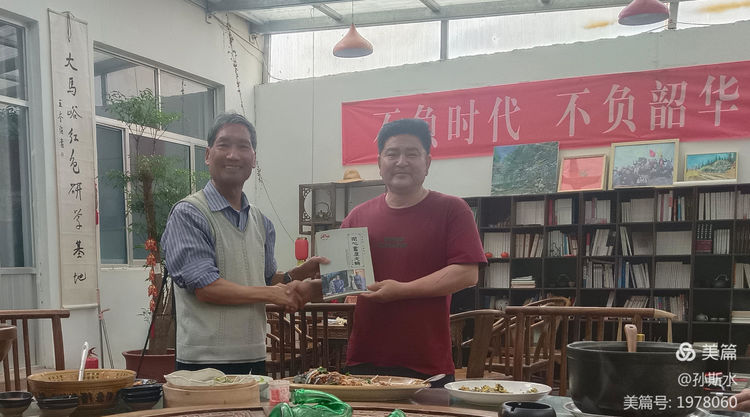 孙斯水向张山峰先生赠送由周村润心书屋读书会编写、纪念中国人民抗日战争暨世界反法西斯战争胜利80周年特刊《润心书屋文辑》第四辑。