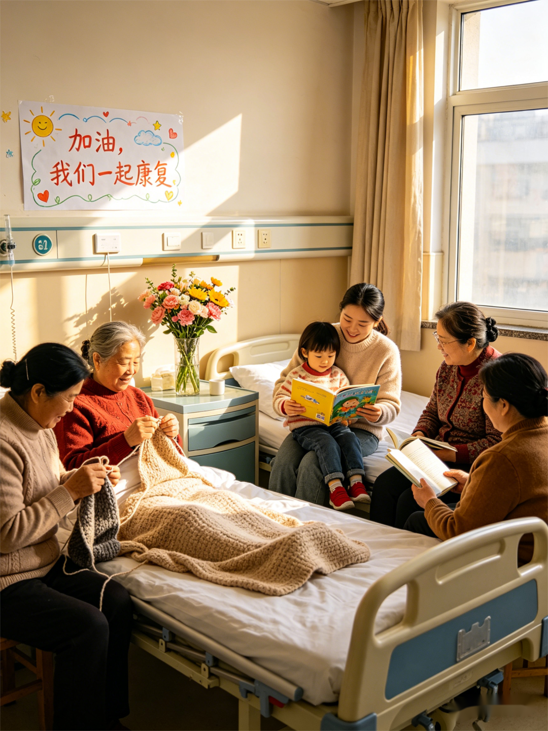 晚上,9床的女儿帮10床何阿姨买了一份蒸蛋。第二天早上10床的丈夫要付钱,那家的女儿说,给啥子钱哟,笑人巴沙的。帮了忙还贴了钱,真是同病相怜的患难之交了,素不相识的病友之间的情谊给治疗增添了温暖。