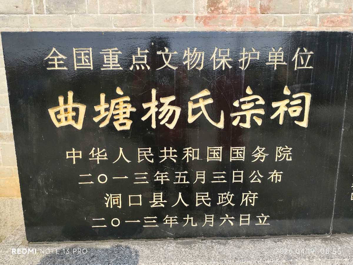 尤为值得铭记的是,1938年抗日战争全面爆发期间,黄埔军校第二分校第六、第七军官总队曾设于该祠,为培养抗日军事人才、支援全面抗战发挥了重要作用。如今,曲塘杨氏宗祠不仅是杨氏家族的历史见证,更是一处重要的爱国主义教育基地。2013年3月5日,宗祠被国务院公布为全国重点文物保护单位。