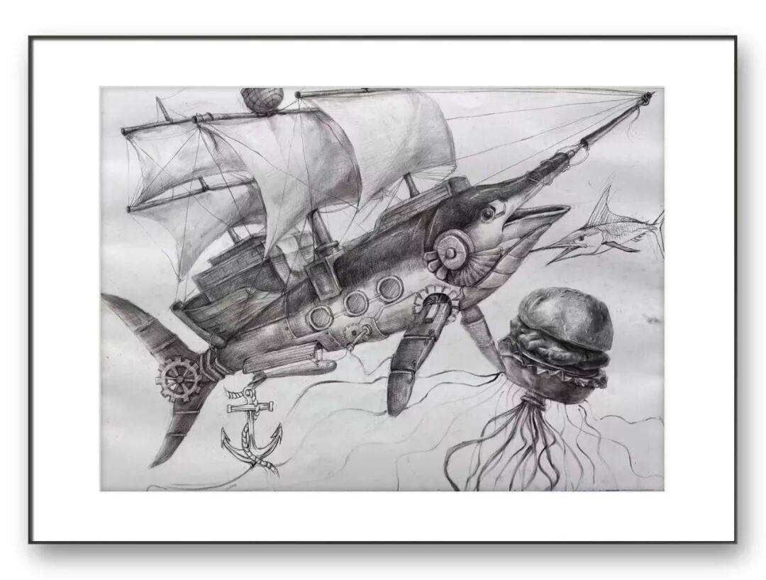 周俊明老师的系列绘画作品,是一场跨越技法边界、穿梭于现实与幻想之间的视觉盛宴。从严谨扎实的素描静物,到充满想象的创意绘画;从写实传神的人物肖像,到饱含传统意韵的线描,每一幅作品都展现出他对绘画语言的深刻理解与多元驾驭能力,更传递出青年创作者在传统与创新之间的探索与思考。