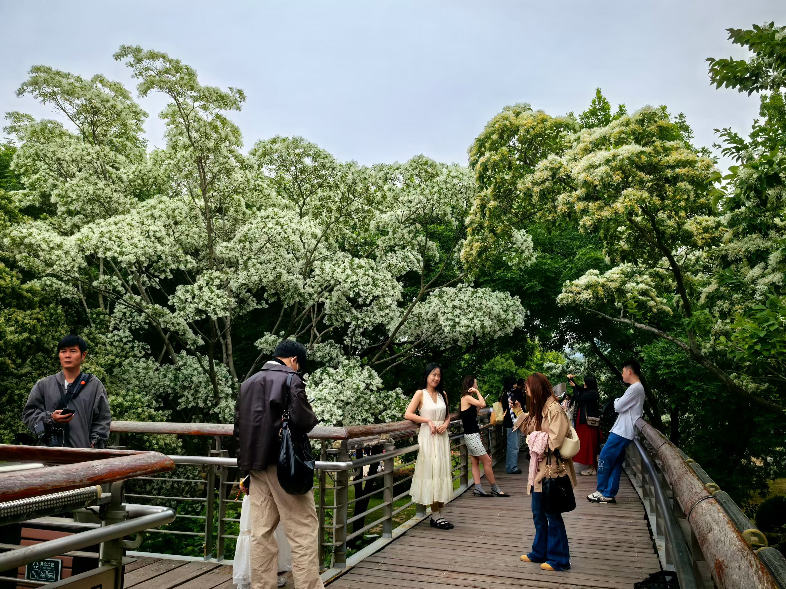 流苏花又开了。桥上的人还在拍照,风把花瓣,看了很久。然后转身往回走吹过来,落在他们的肩上,又轻轻滑下去。我站远了些,脚步比来时慢了一些。