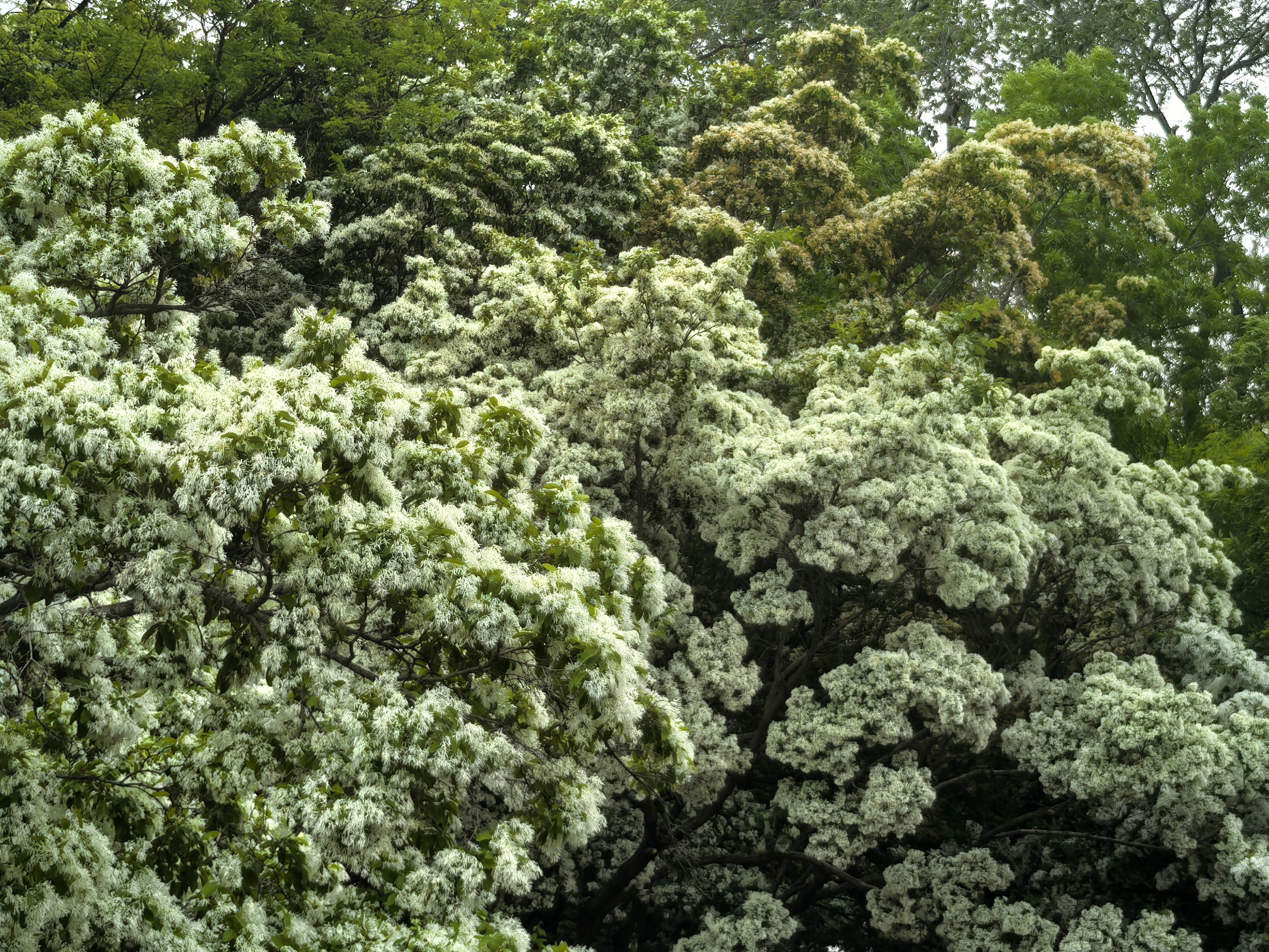作为一棵树,它的白是不争的。就那么静静地白着,香也是淡淡的,凑近了才闻得到。可一旦开起来,满树的花谁也不让着谁,你挨着我,我挨着你,一起开,也一起老。等到该落的时候,它们也不各自飘零,而是抱在枝头,一整个春天一整个春天地慢慢褪去颜色。这种齐刷刷的郑重,像一群懂得彼此的人,约好了做同一件事。