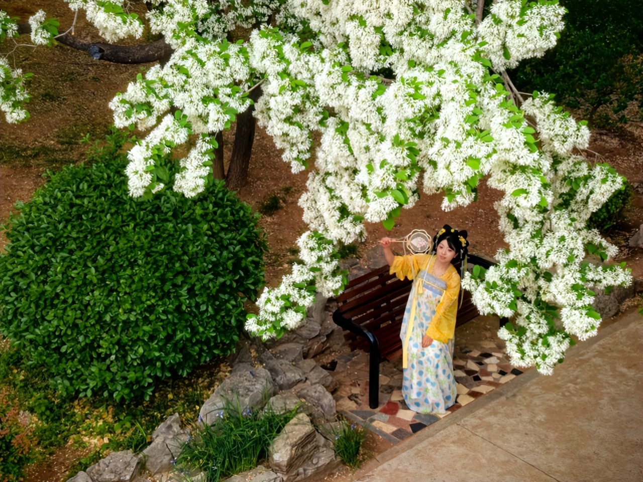 身后是满树的四月雪,静静地下着。