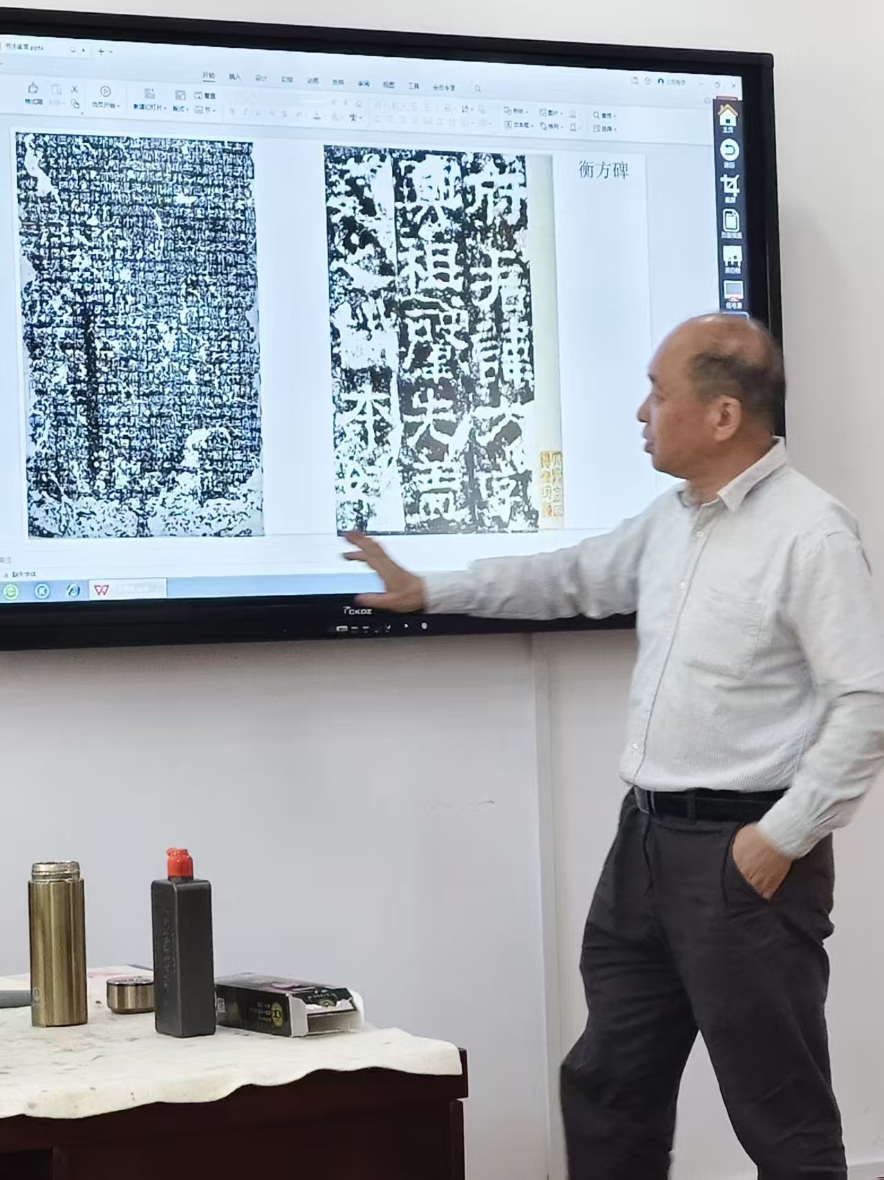 正式开课后,郭震老师由浅入深,重点梳理了书法在各个朝代的起源与发展脉络,从先秦文字的雏形,到历代书体的演变,讲得条理清晰、通俗易懂。他还细致讲解了拓片与石碑石刻的传承历程,讲述了古人如何通过石刻、拓片将书法艺术代代相传,让大家深刻感受到书法文化的魅力。