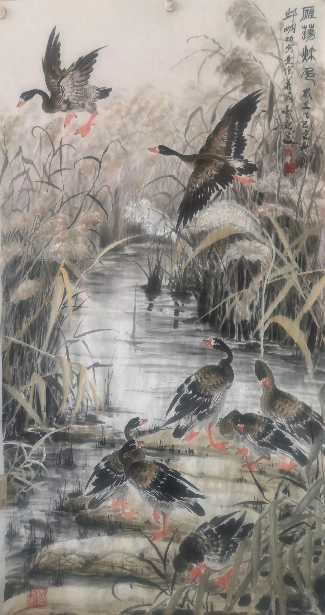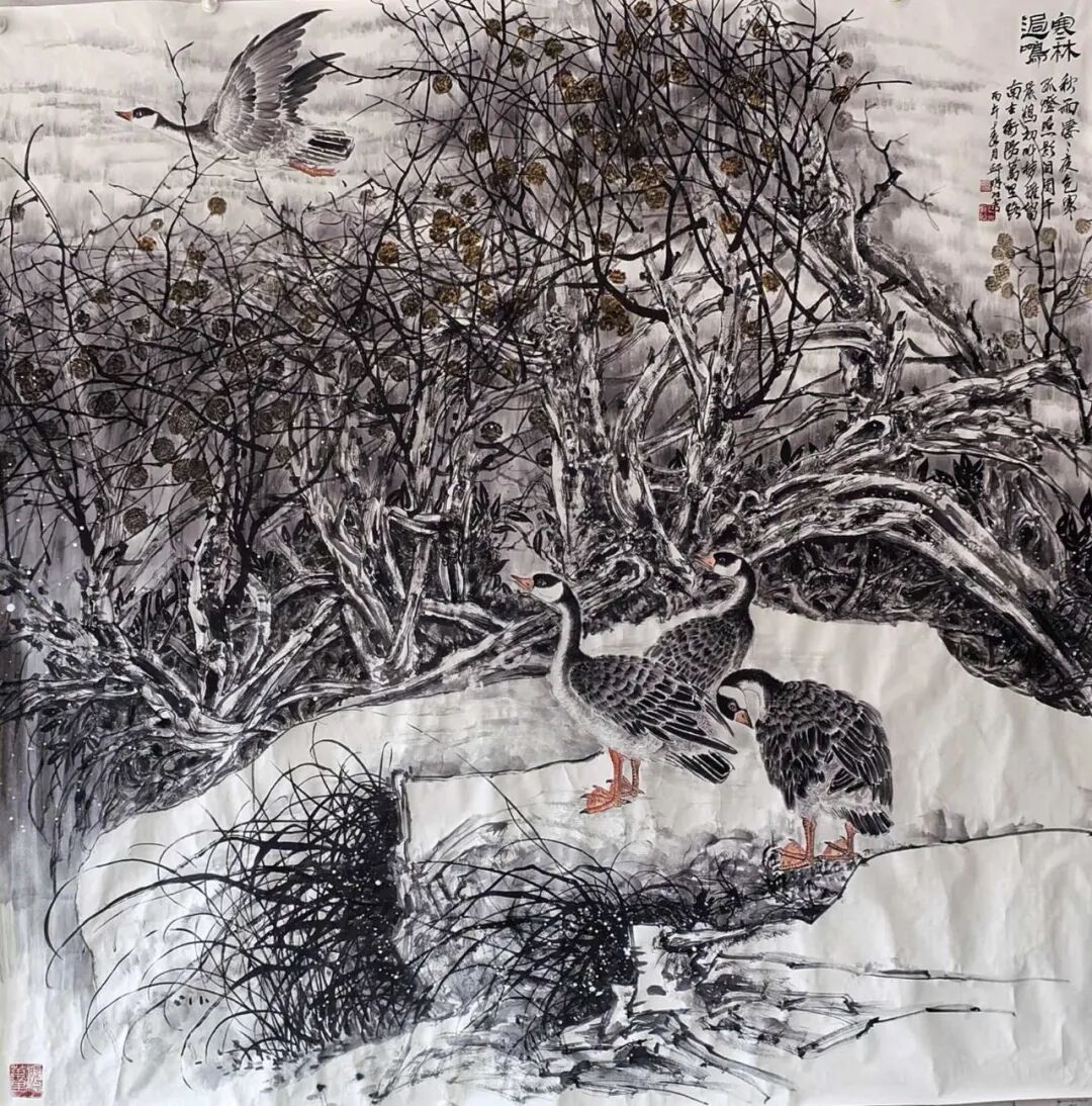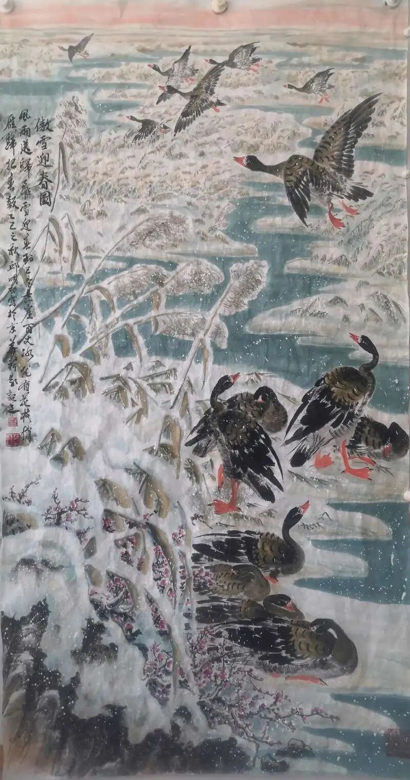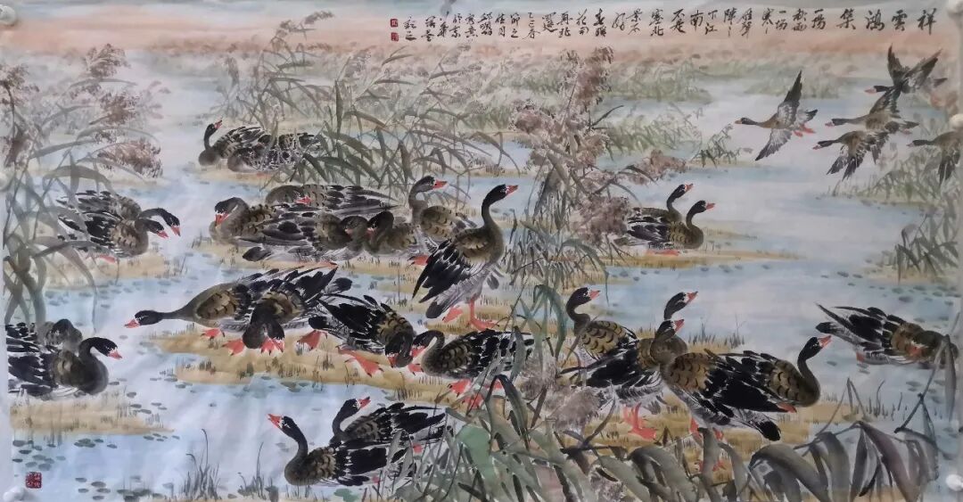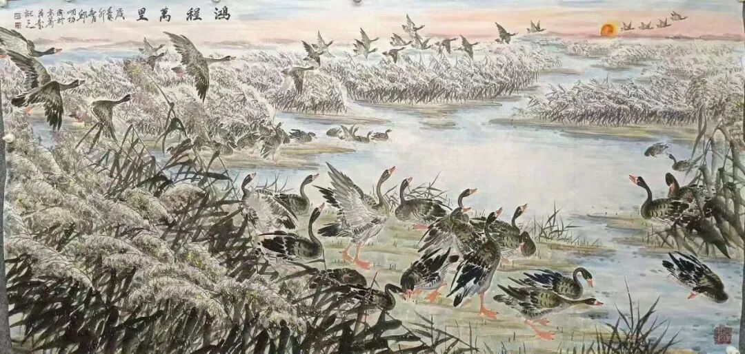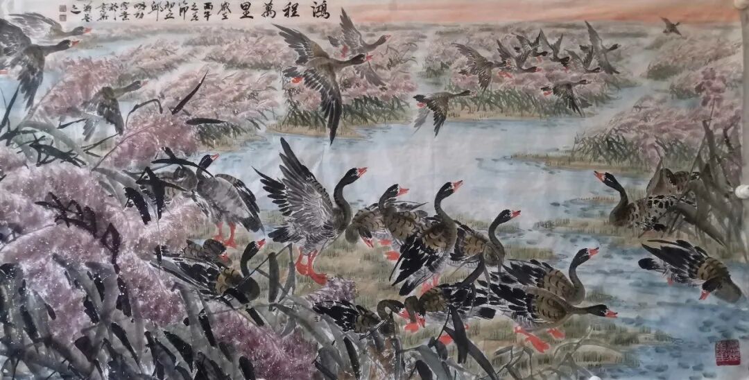 近九年,邱明功多次同王阔海,马海芳等著名画家在山东新泰,东营各地举办联展。在北京朝阳,通州举办个人画展。中国好书画:栏目专题采访转播了邱明功的精品画作。其画作多次在各大书报刊上发表。近日同何家英,徐里,卢禹舜等画家在北京举办了:时尚经典,全国书画名家展。邱明功笔下的大雁深受广大观众喜爱和专家的赞誉。我们期待:江北雁公:邱明功笔耕不辍,画路开阔走向更高更远。