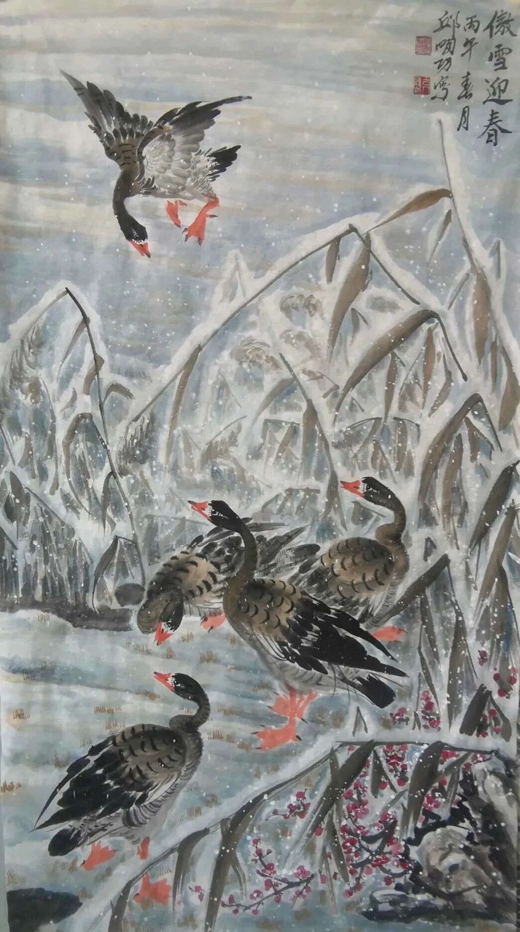 邱明功 字江北雁公,斋号瑞明斋。山东青州人,自幼酷爱书画,结业于山东省美协培训中心花鸟创作班,在全国美展中多次荣获金银奖。现居北京大学艺术学院高研班贾广健导师工作室,身受霍春阳、贾广健导师的亲临传教;并授课于范扬、史国良、刘曦林等导师。
