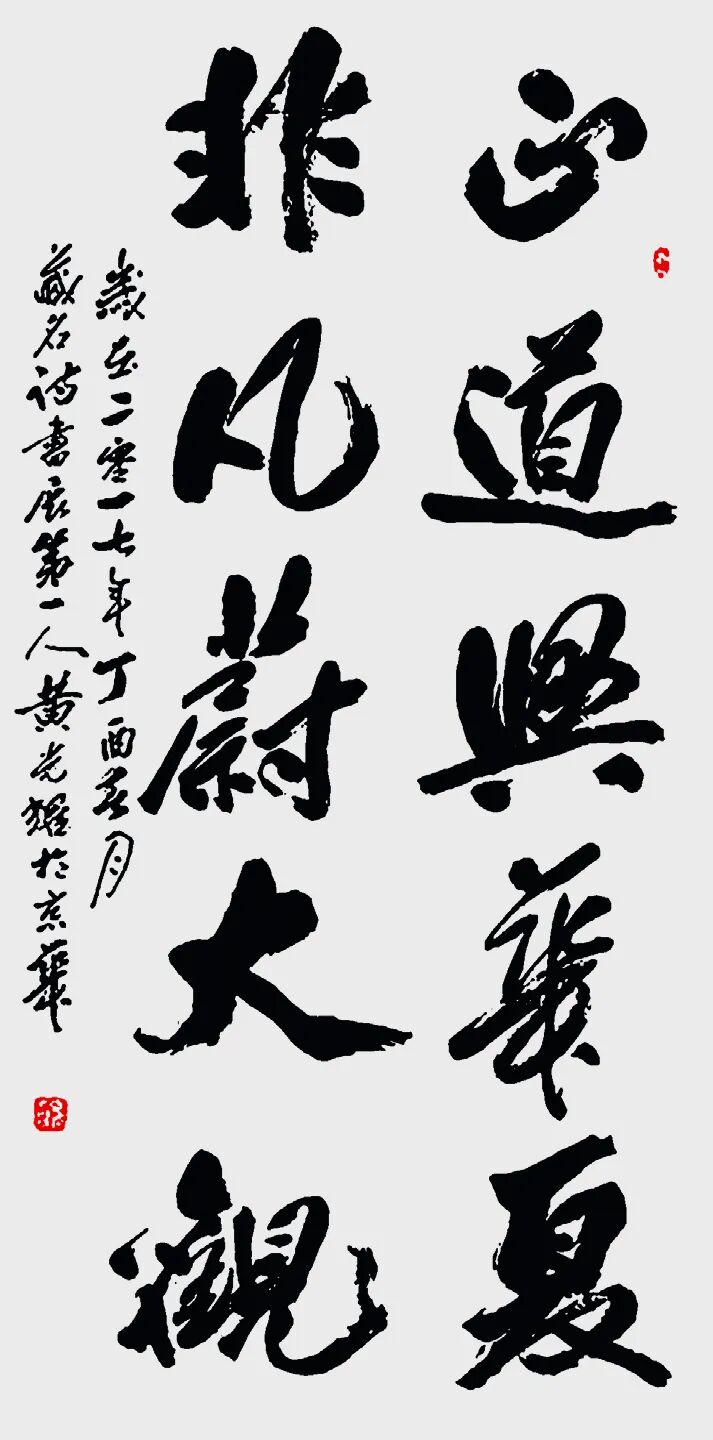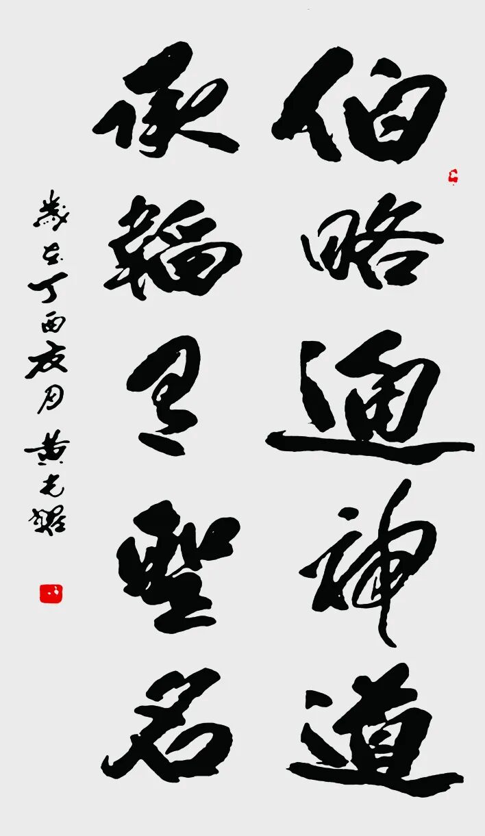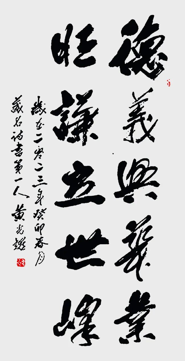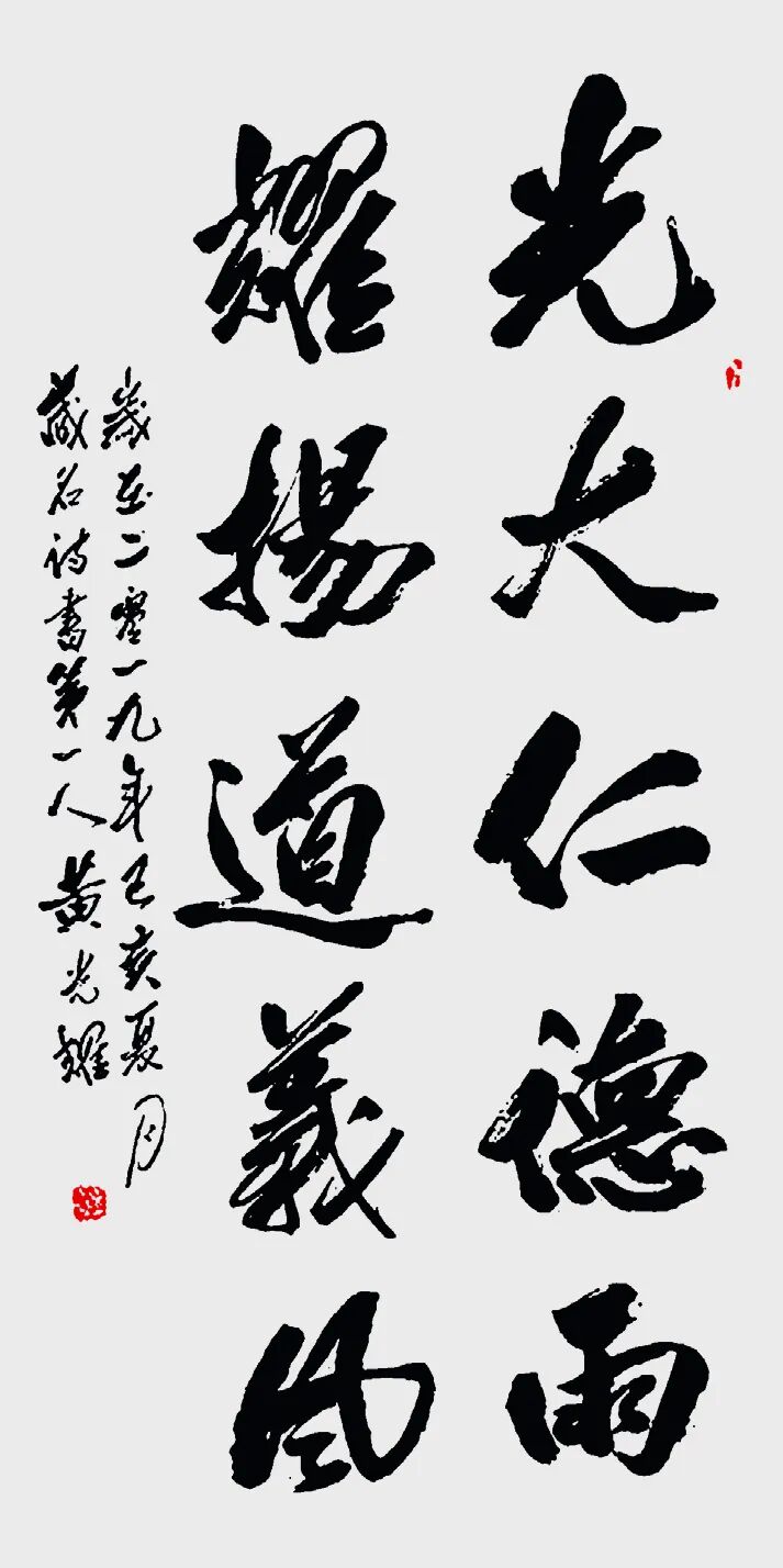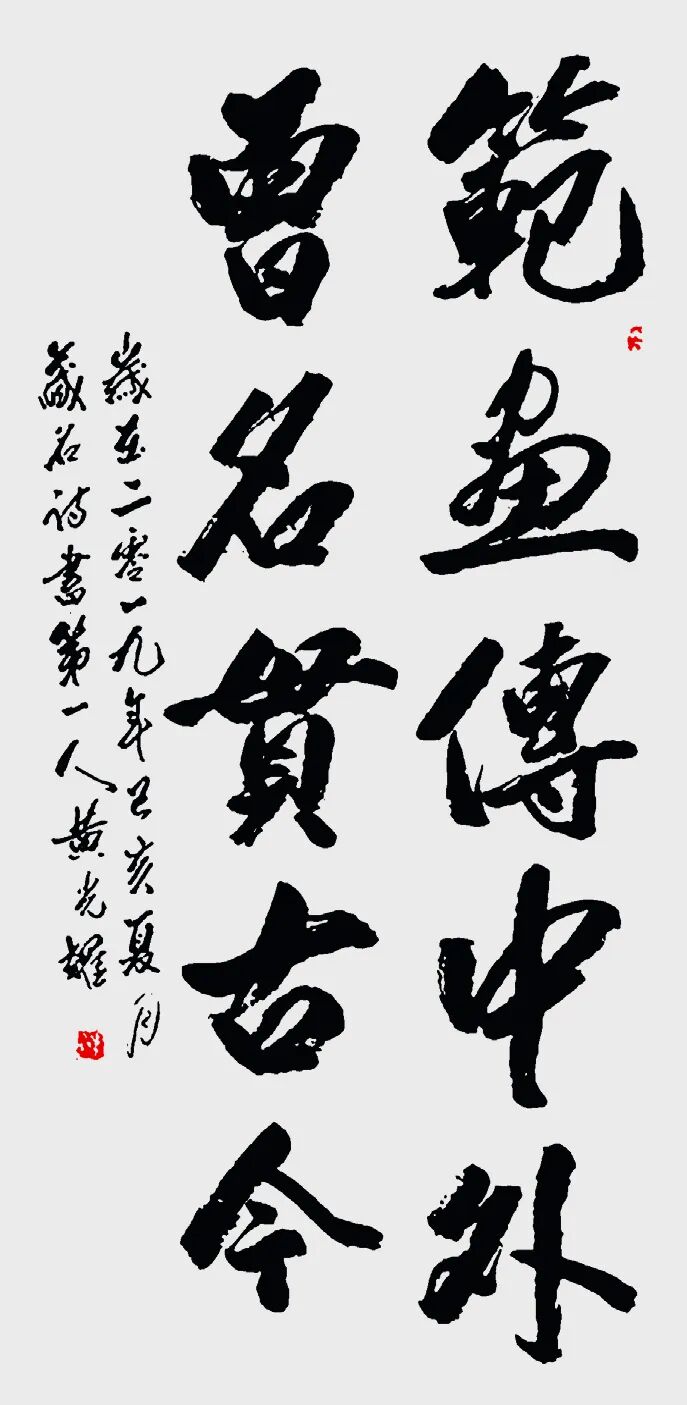 2.与王羲之对比:王羲之被尊为“书圣”,代表古代书法巅峰及行书典范;黄光耀则被视为在当代进行重要创新的书法家,在规范之上开拓了藏名诗书的新形式,体现了书法艺术在新时代的传承与发展。