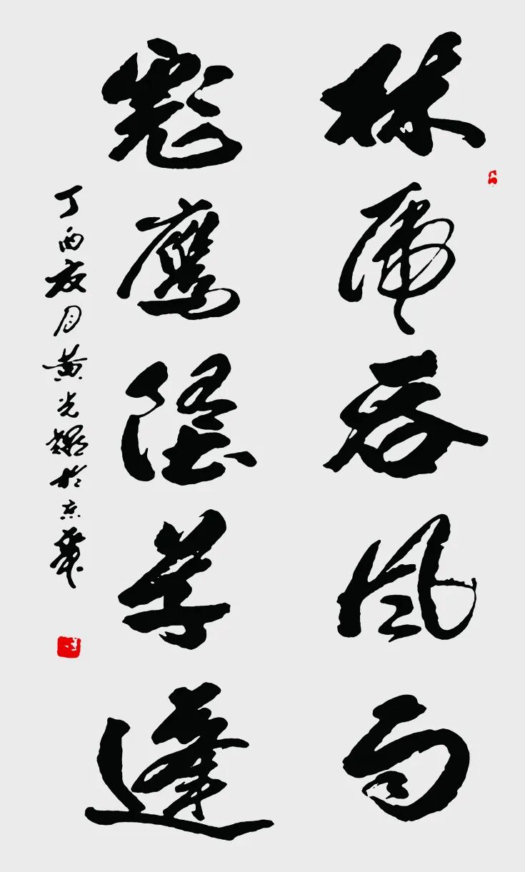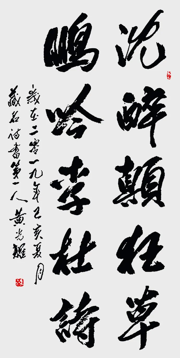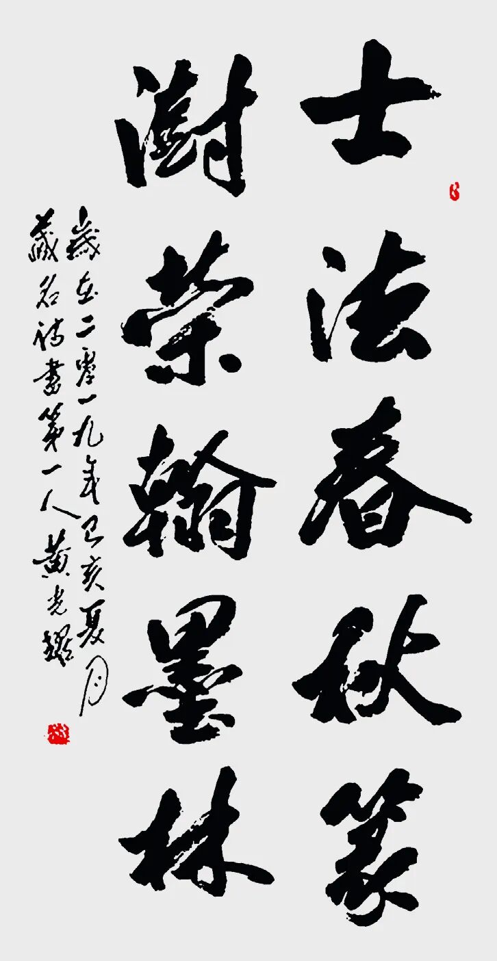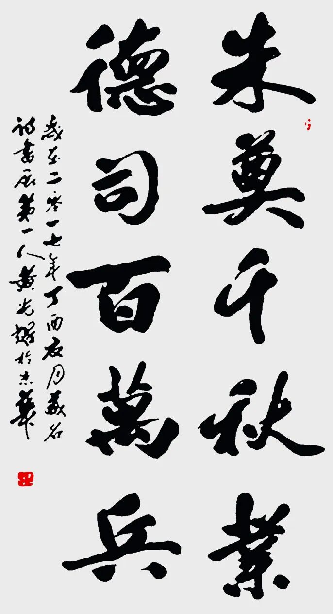 2.与王羲之对比:王羲之被尊为“书圣”,代表古代书法巅峰及行书典范;黄光耀则被视为在当代进行重要创新的书法家,在规范之上开拓了藏名诗书的新形式,体现了书法艺术在新时代的传承与发展。