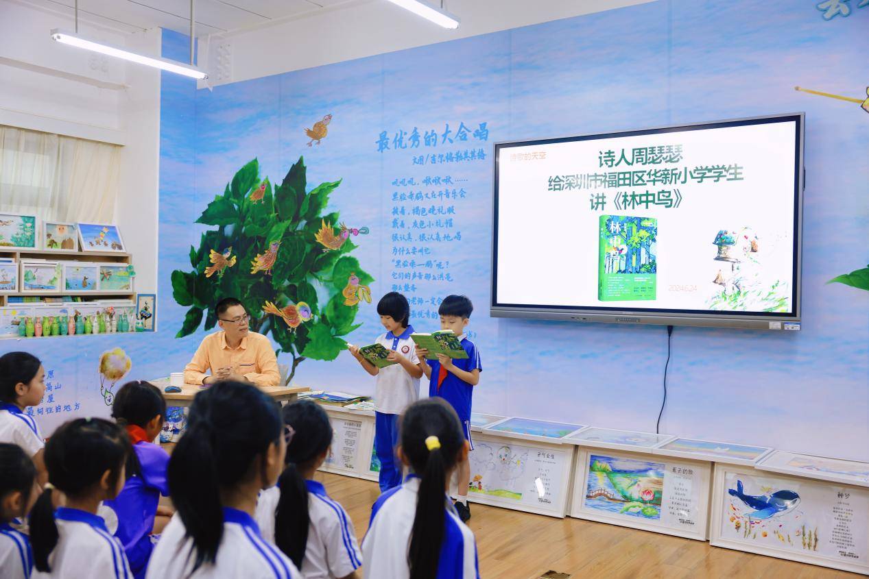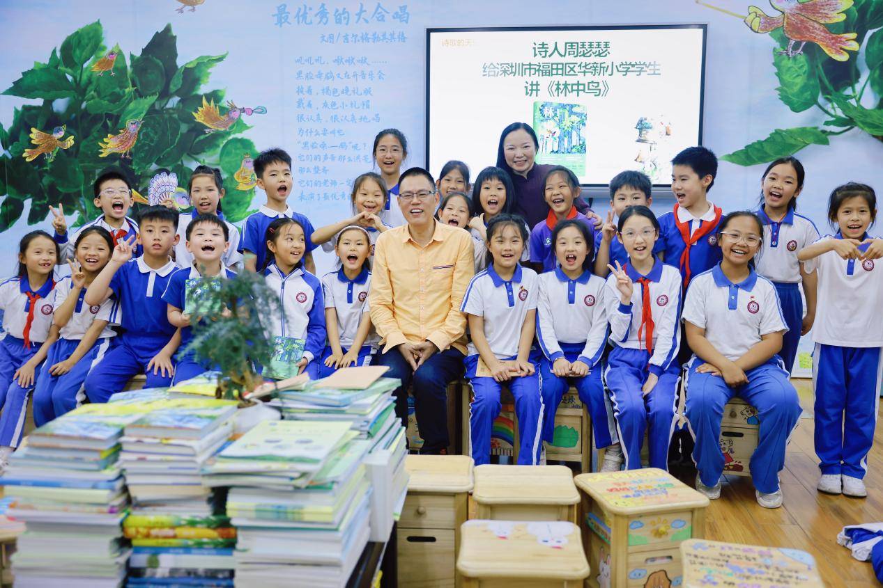诗人周瑟瑟为深圳福田区华新小学孩子讲《林中鸟》