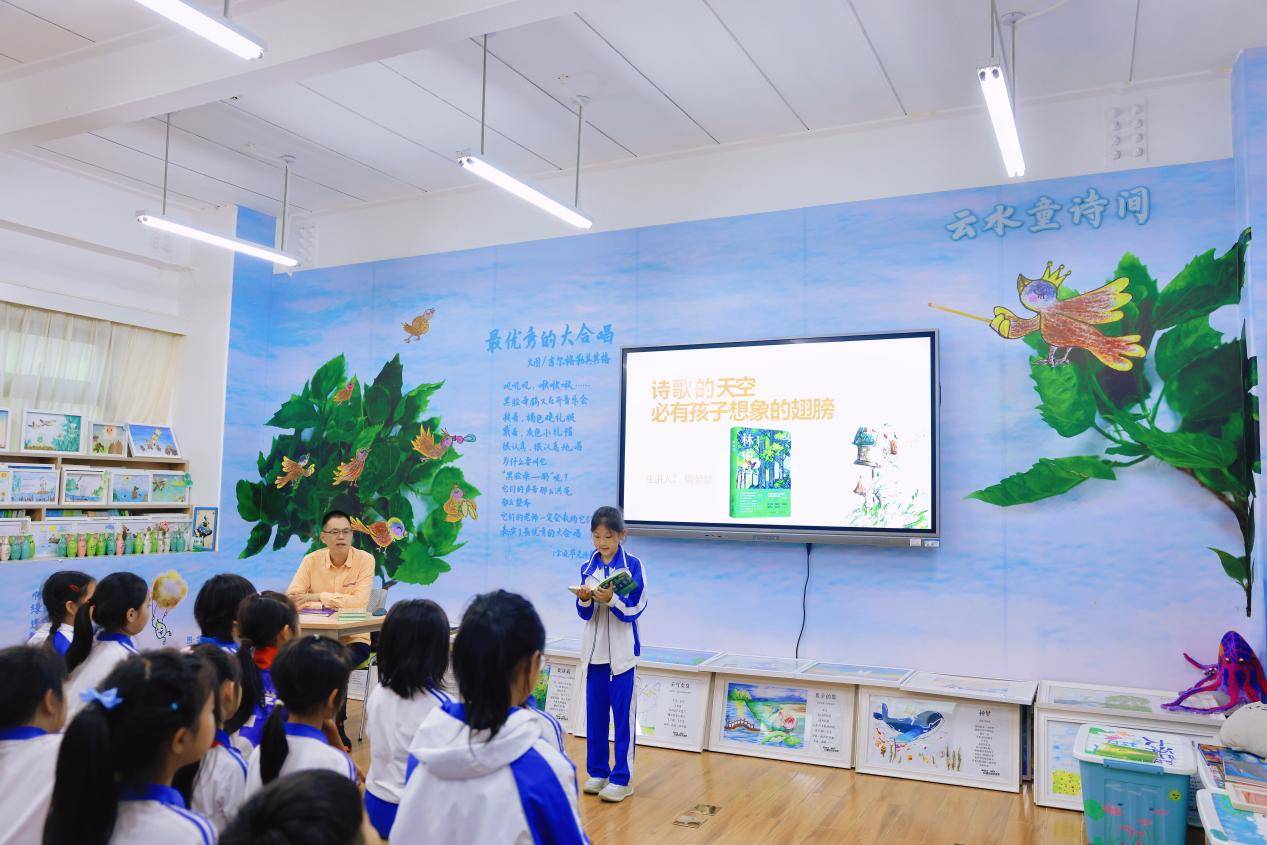 周瑟瑟在华新小学“云水童诗间”诗社讲座。