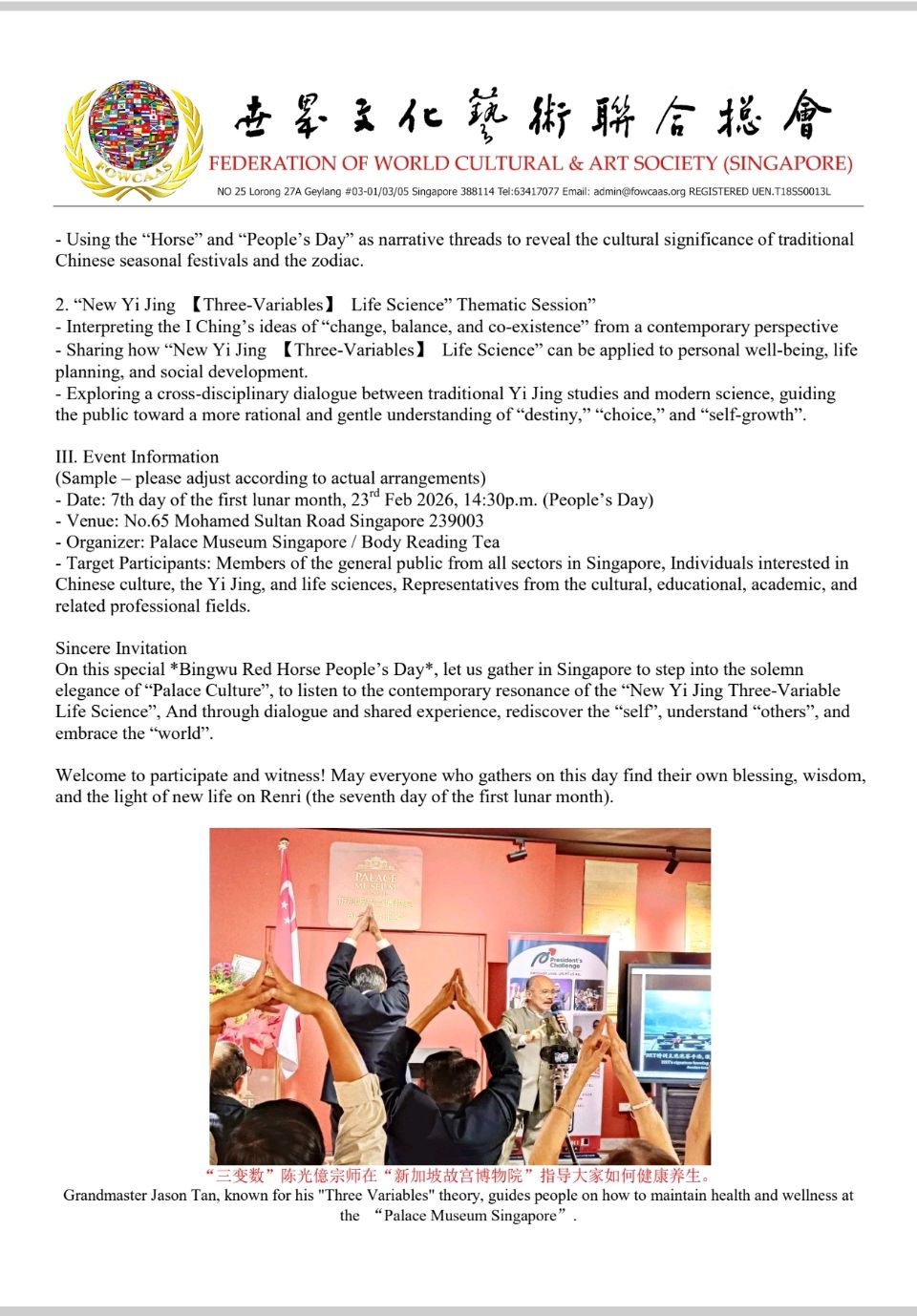 “Palace Museum Singapore” and “New YI Jing [Three-Variables] Life