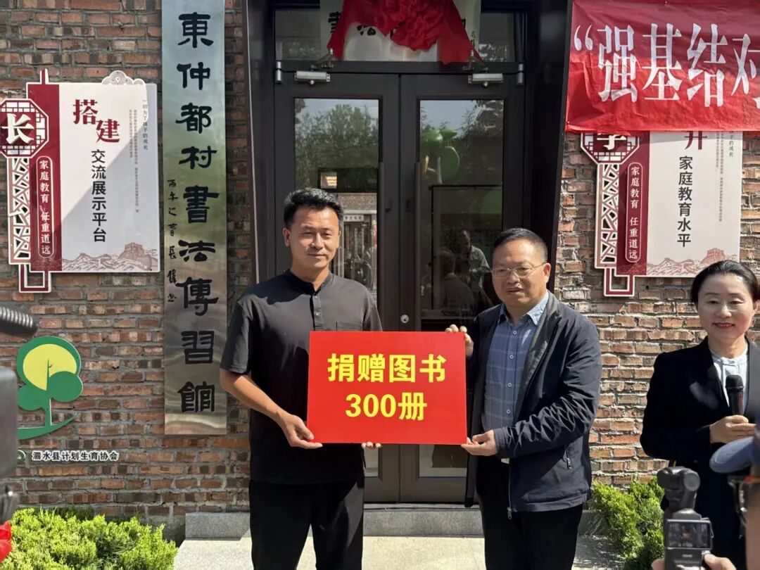 揭牌仪式后,文化互动与全民阅读环节同步开展。书法名家现场创作、公益授课,手把手指导青少年及书法爱好者,还向村民、学生代表赠送字帖;村民与学生翻阅书籍,交流阅读心得,倡导以书香润家风、促振兴。